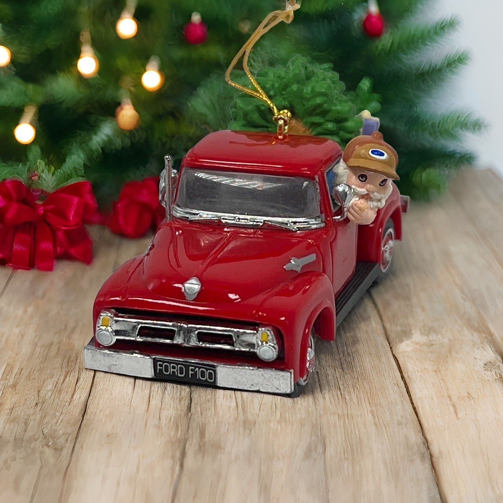 Hit the road in classic style with the vintage “1956 Ford F-100” ornament by Enesco, item 209724. This finely detailed collectible celebrates the legendary Ford pickup truck, showcasing its bold mid-century design with chrome-style accents and glossy paint. Expertly sculpted from durable resin, it captures the rugged yet nostalgic charm of America’s favorite workhorse. Perfect for car lovers and Enesco collectors alike, this ornament adds a touch of retro Americana to any Christmas tree or display shelf.