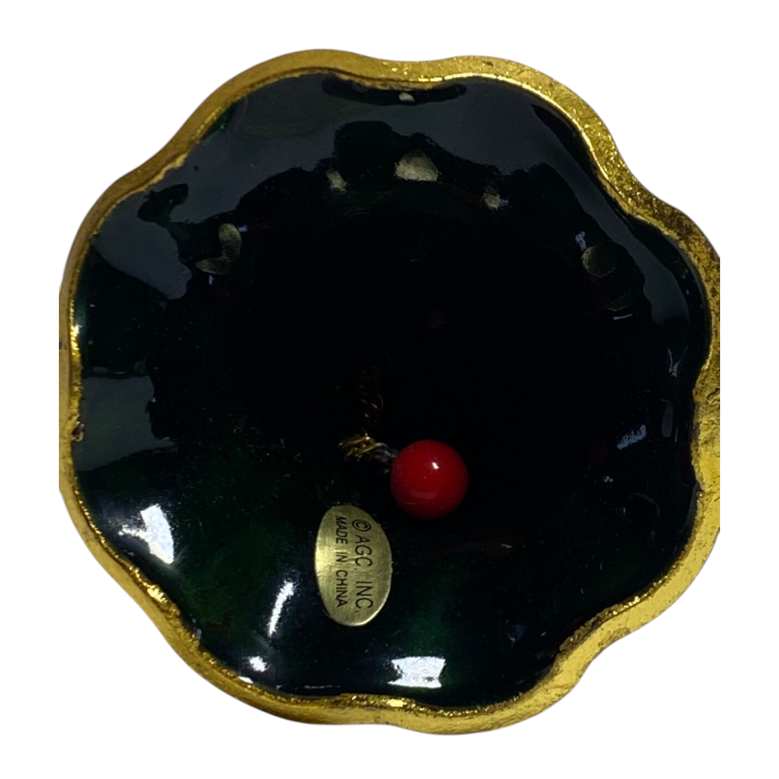 This elegant Bell in Bloom ornament by Carlton Cards features a beautifully crafted bell shape adorned with color-rich floral motifs in a cloisonné-style enamel finish. Molded on a metal base (likely brass) with glossy enamel and detailed blossoms, the piece brings a refined, decorative touch to holiday décor. Its compact size and ornate design make it ideal for collectors of vintage Christmas ornaments, floral motif enthusiasts, or anyone looking to add an heirloom-style accent to their tree. The harmonious blend of bell symbolism and blooming flowers gives this ornament a unique combination of traditional holiday spirit and decorative artistry.