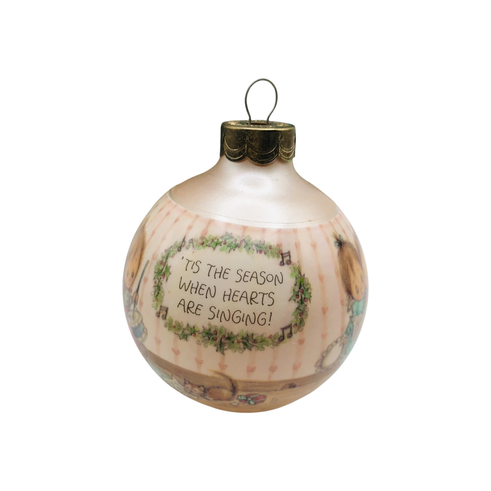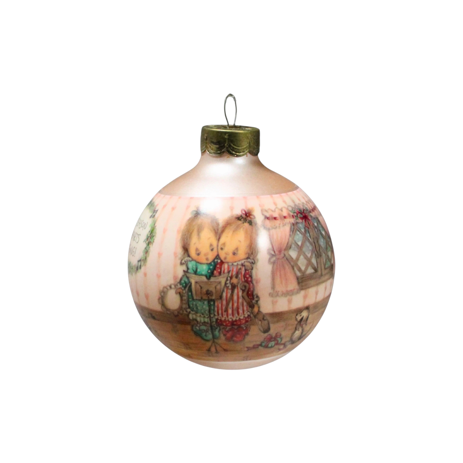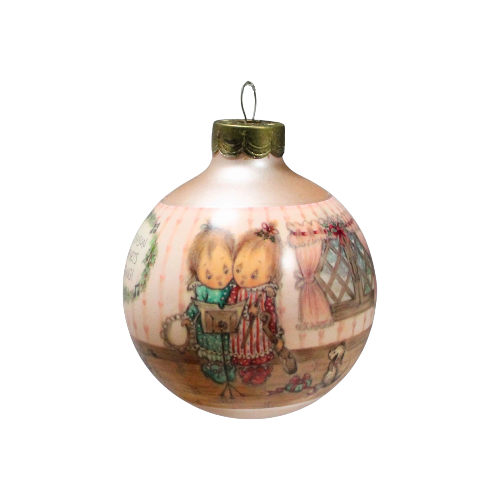 This 1990-dated piece by Betsey Clark is the fifth ornament in her “Home for Christmas” series, featuring a cozy folk-art-style house warmed by soft light and surrounded by children caroling in a winter scene. Rendered in vibrant colors and hand-painted glass, the design captures Clark’s signature nostalgic charm and evokes the joy of family and home at the holidays. Its traditional round bulb shape and date make it especially appealing to collectors of vintage Hallmark Keepsake ornaments. Whether displayed among other Betsey Clark ornaments or as a stand-alone tribute to holiday homecomings, it offers both decorative appeal and collector interest.