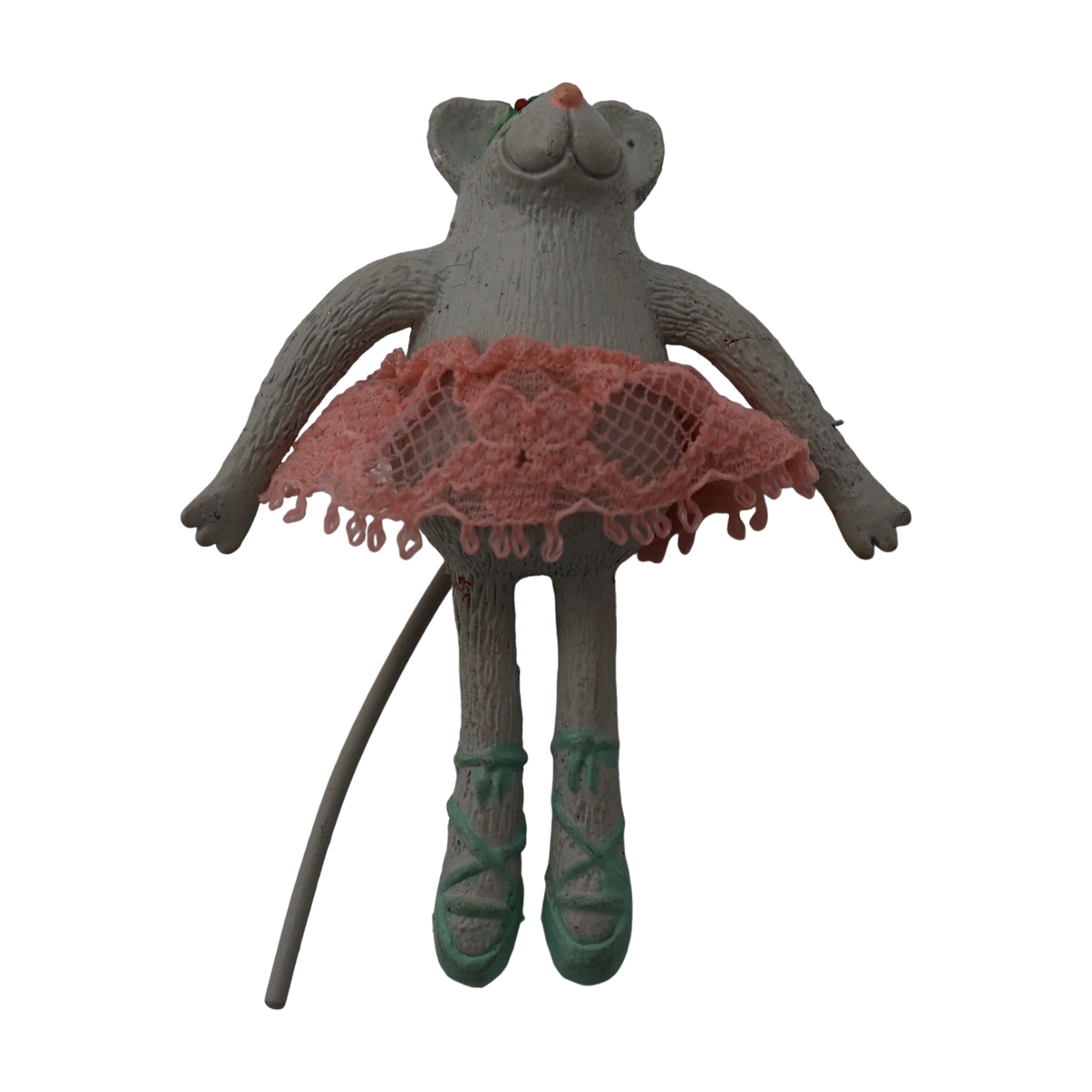 Materials: Painted resin/plastic with cloth tutu and flexible limbs