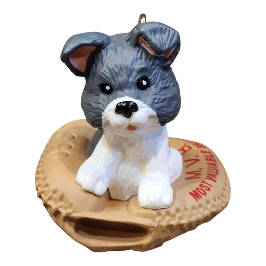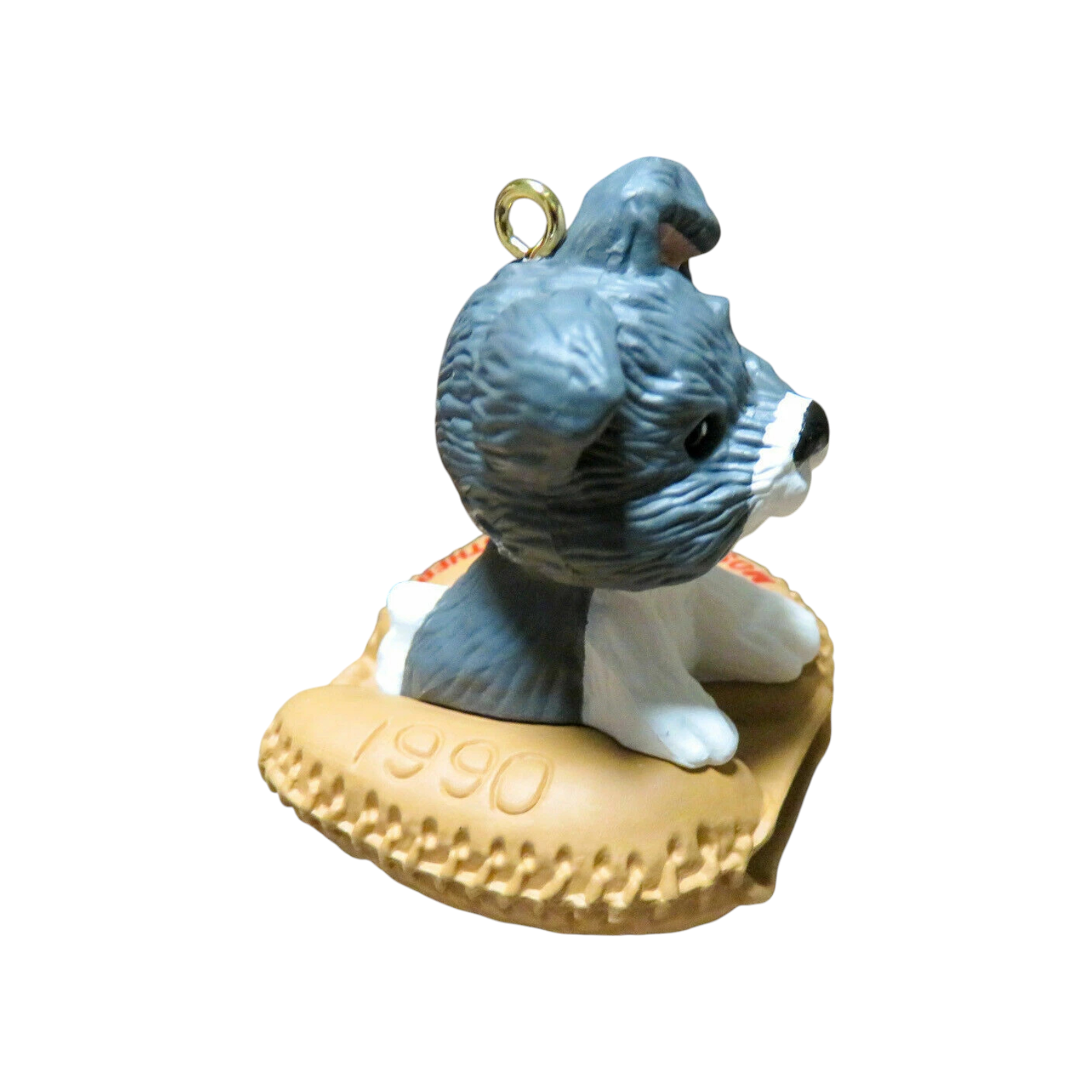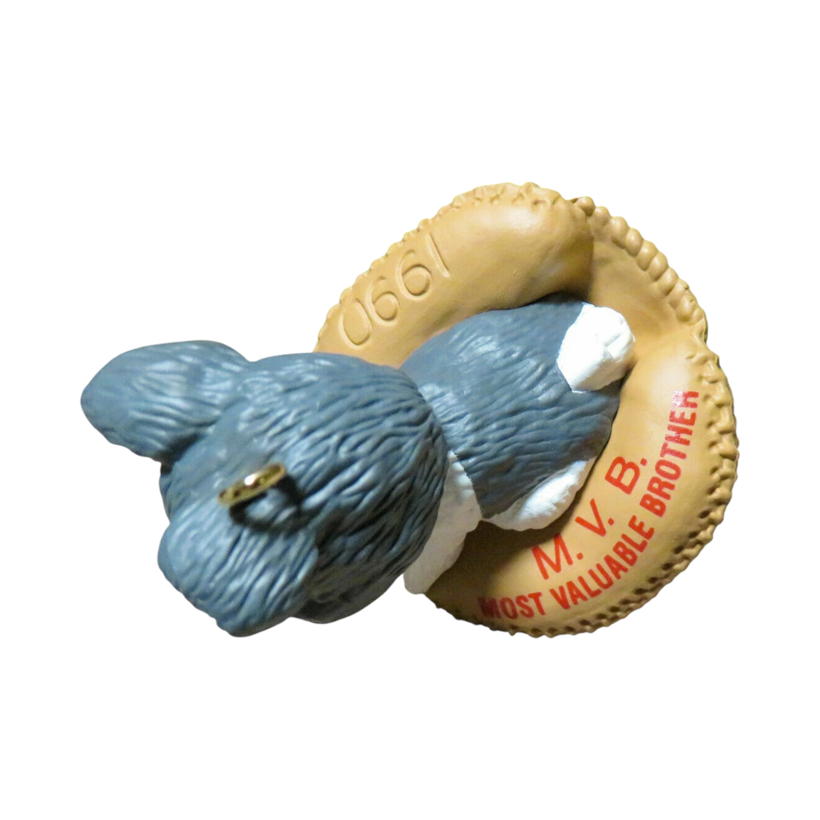 Celebrate the special bond between siblings with this endearing 1990 Brother ornament from Hallmark’s Family collection. This playful resin keepsake features a puppy nestled in a baseball glove emblazoned with “M.V.B.”—short for “Most Valuable Brother”—perfectly capturing both charm and sibling pride. Designed as a keepsake that’s ready to display, it comes mint in its original Keepsake box and requires no power—simply hang and enjoy the sentiment immediately.
