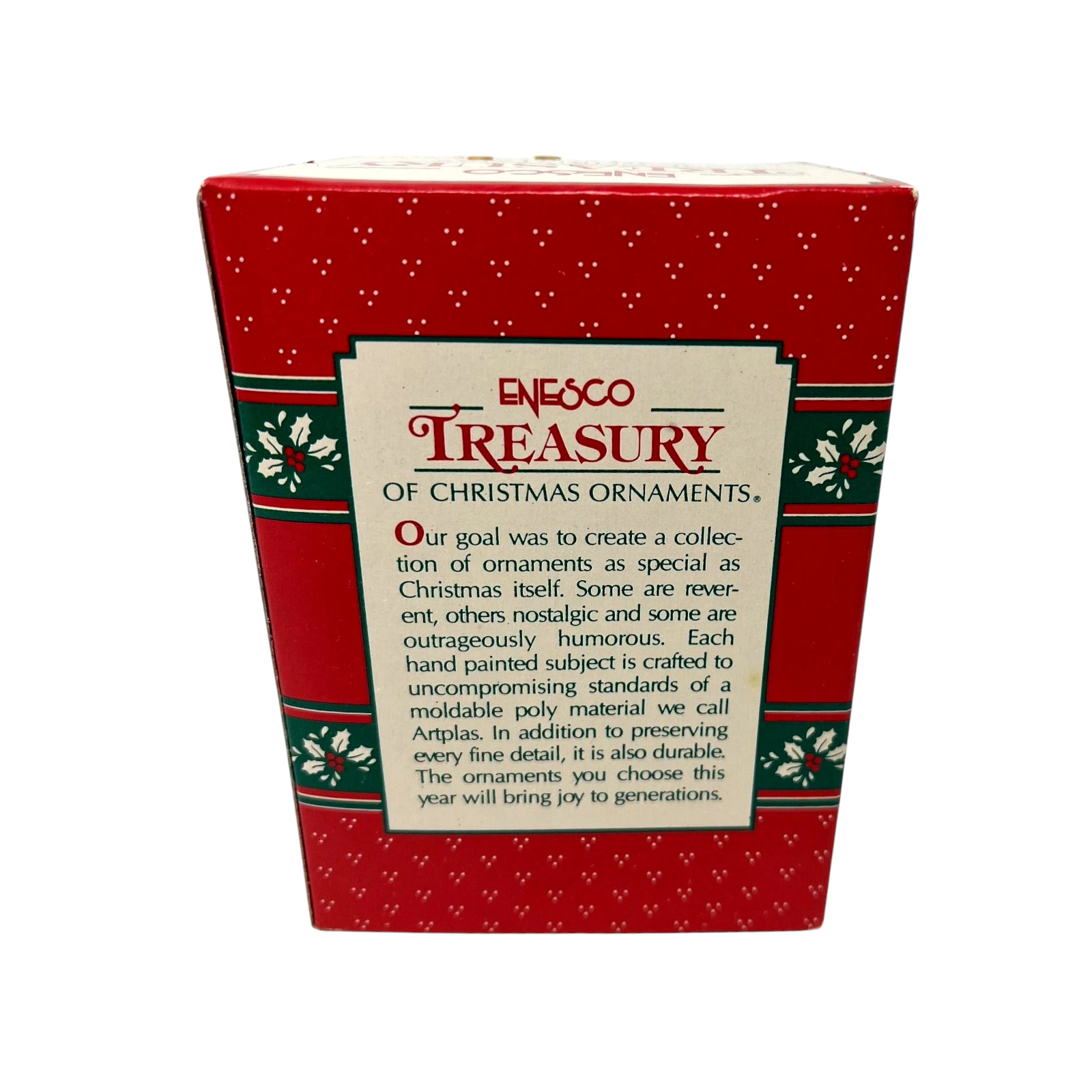 Share a sweet reminder of home and holiday warmth with the 1990 Enesco “Calling Home At Christmas” ornament. This adorable piece features a charming little mouse perched beside a vintage-style telephone, joyfully connecting with loved ones during the festive season. Expertly hand-painted with rich color and whimsical detail, the design captures Enesco’s heartwarming storytelling style that collectors adore. Perfect for those who treasure nostalgic Christmas moments, this ornament embodies love, connection, and the joy of being together — even from afar.