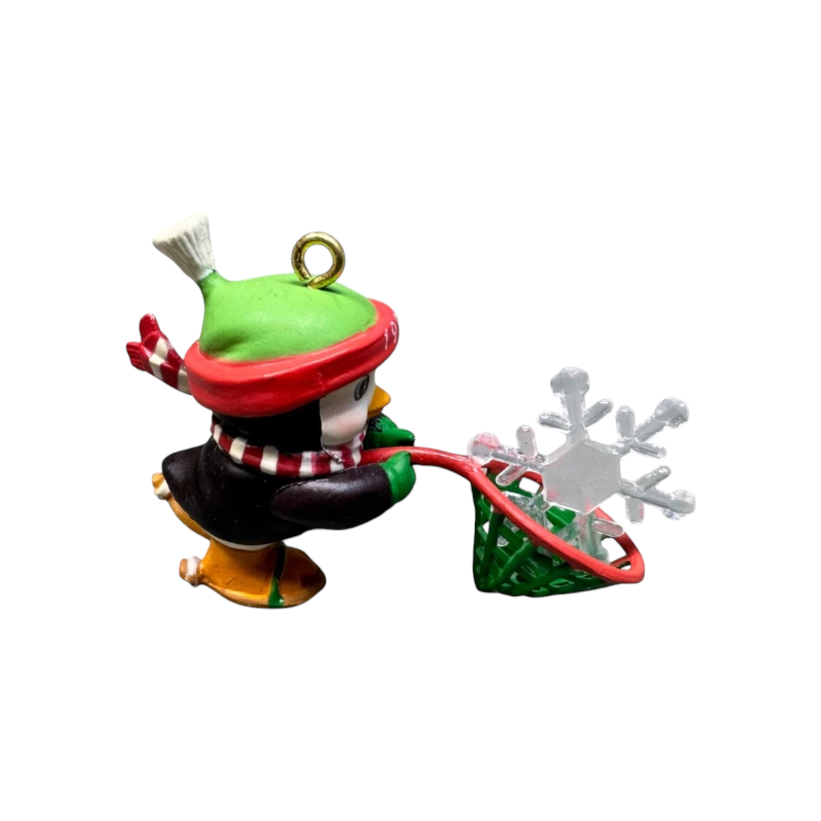 Capture the playful warmth of holiday cheer with the 1990 “Catch the Christmas Spirit (Penguins)” ornament (SKU 114856-7). This vintage piece features two festive penguins—wearing scarves and hats, perhaps engaged in a whimsical winter scene—rendered in painted mixed-materials (resin/plastic) with subtle metallic accents and a hanging loop. A charming collector piece from the early Heirloom era, it blends animal-themed festive fun with classic craftsmanship. Perfect for penguin-theme trees, vintage ornament collections or as a cheerful seasonal keepsake.