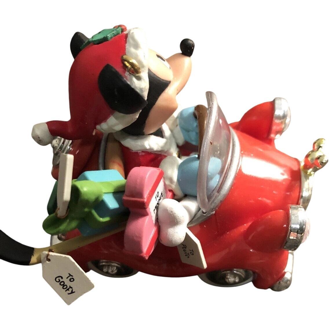 Hit the holiday road with the Enesco “Christmas Cruisin’” ornament featuring Mickey Mouse! This delightful collectible showcases Mickey behind the wheel of a bright red vintage car, decked out with festive wreaths and presents. Hand-painted with Enesco’s signature craftsmanship and Disney’s timeless charm, it perfectly blends nostalgia, color, and cheer. A must-have for Disney fans and Enesco collectors, this ornament captures the fun, adventure, and joy of a classic Mickey Christmas celebration.