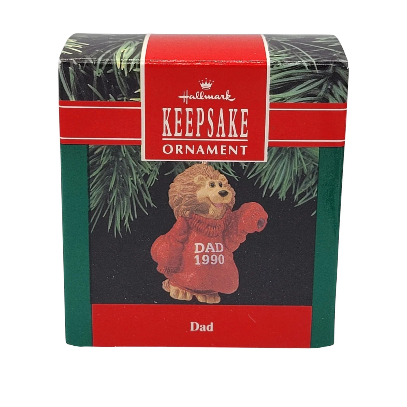 Celebrate the holiday spirit with a touch of nostalgic charm. The 1990 Dad (Animal) ornament features an adorable raccoon father balancing gingerly on a tree branch, wearing a cozy red sweater emblazoned with "DAD 1990." This whimsical resin keepsake comes mint in its original Keepsake box and requires no power—simply hang and let the festive love unfold.