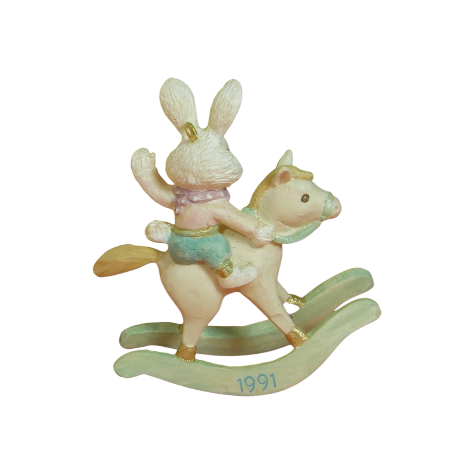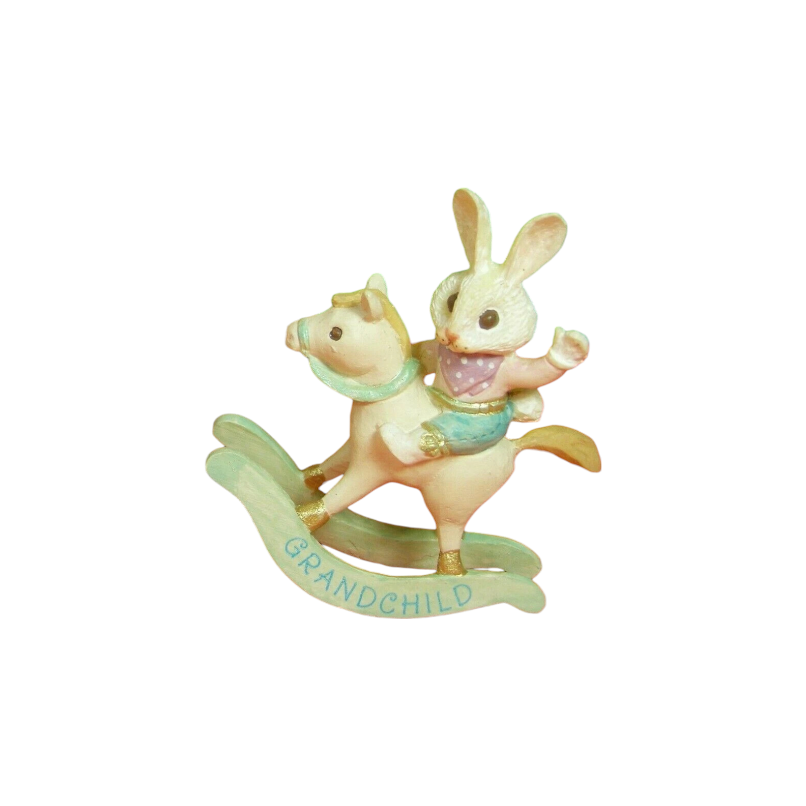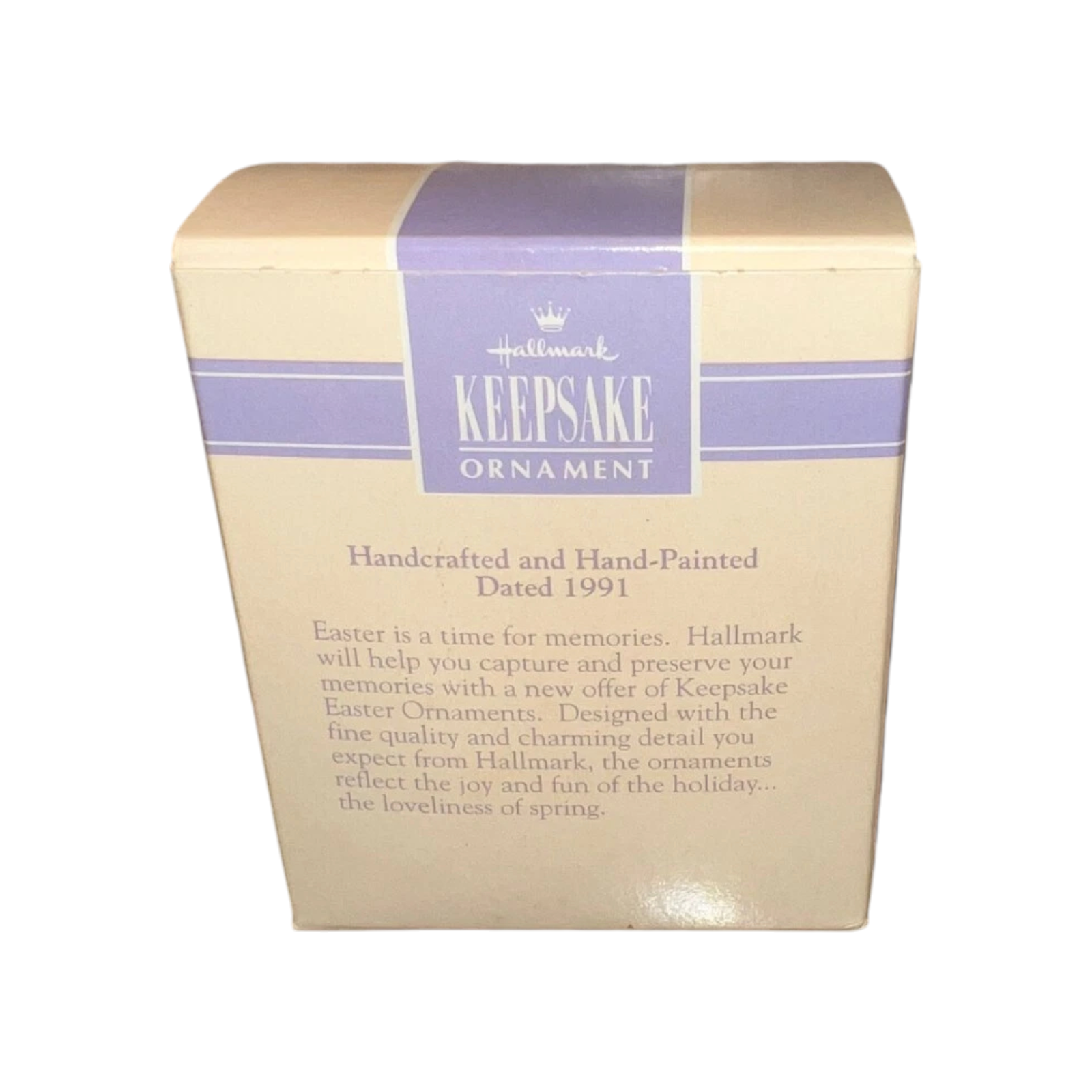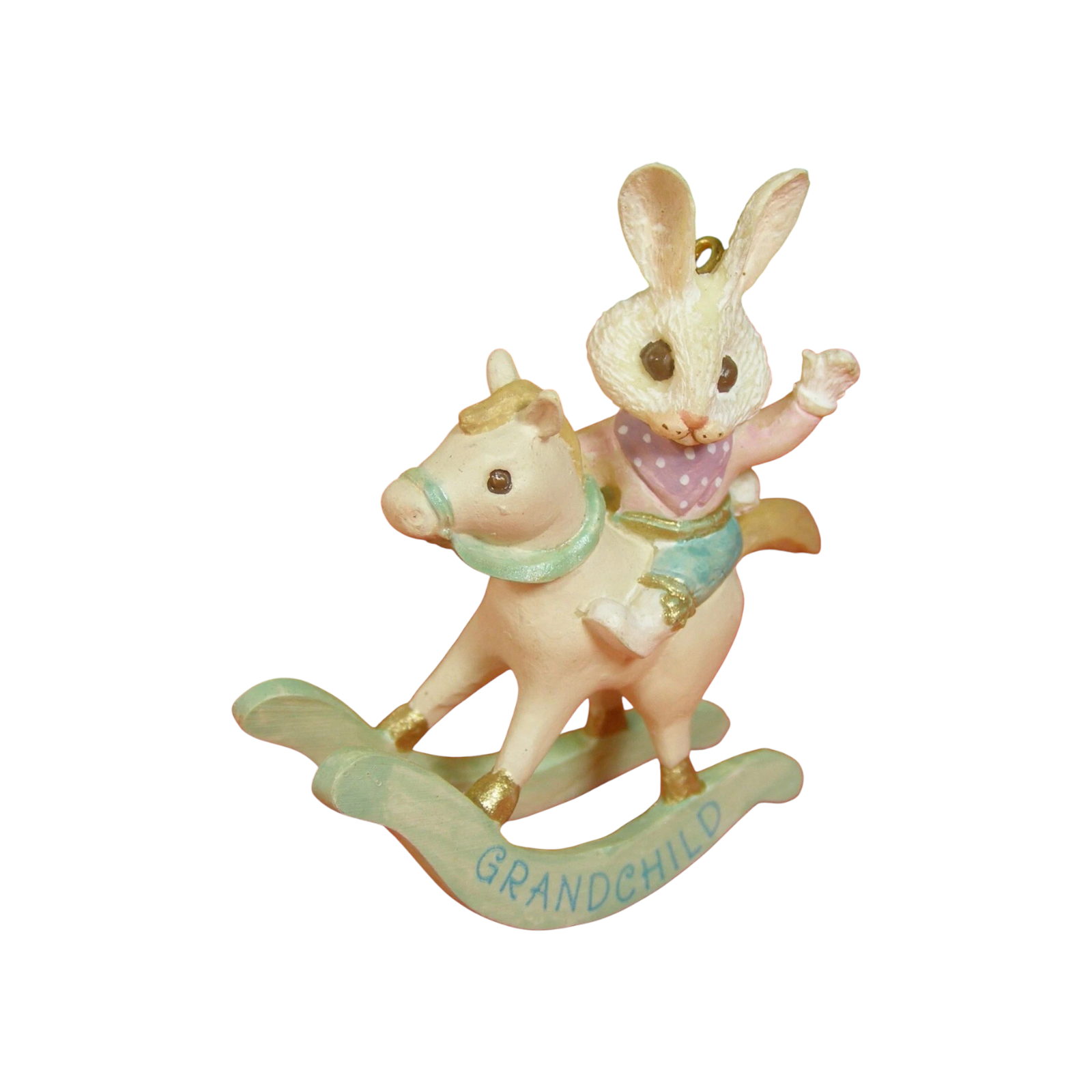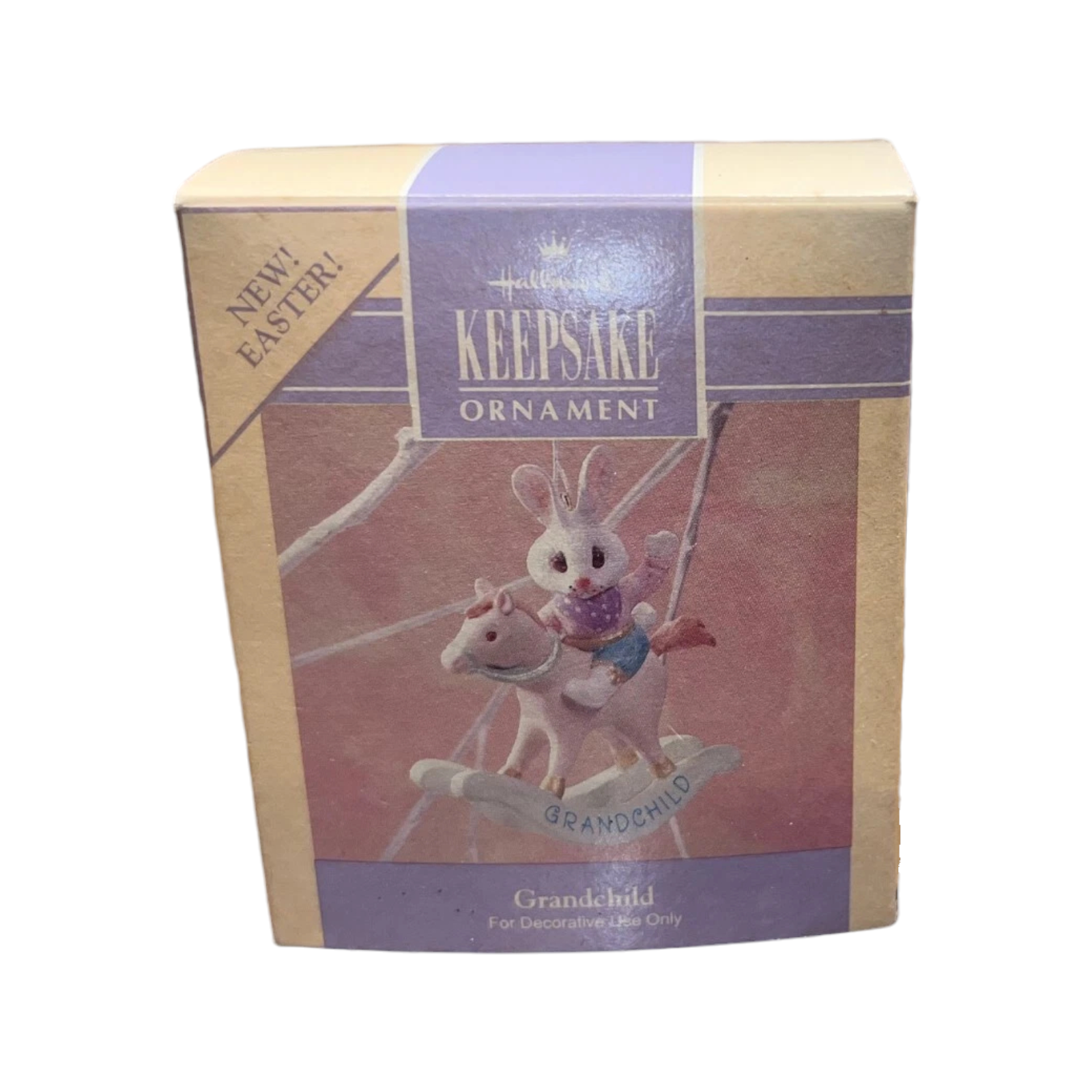The 1990 Grandchild ornament by Hallmark is a sweet and cheerful Easter keepsake celebrating the special bond between grandparents and their grandchild. The design features an adorable baby bunny holding a pastel-colored Easter egg with the word “Grandchild” inscribed on it. Surrounded by delicate spring flowers and soft seasonal colors, this ornament perfectly captures the lighthearted joy of Easter and new beginnings. Crafted with Hallmark’s signature 1990s charm, it was designed to be both a collectible and a sentimental gift from grandparents. It includes a hanging loop suitable for Easter trees or spring displays and, when complete, comes in its original Hallmark box. No batteries, cords, or lights are required. The ornament measures approximately 2¾ inches tall.