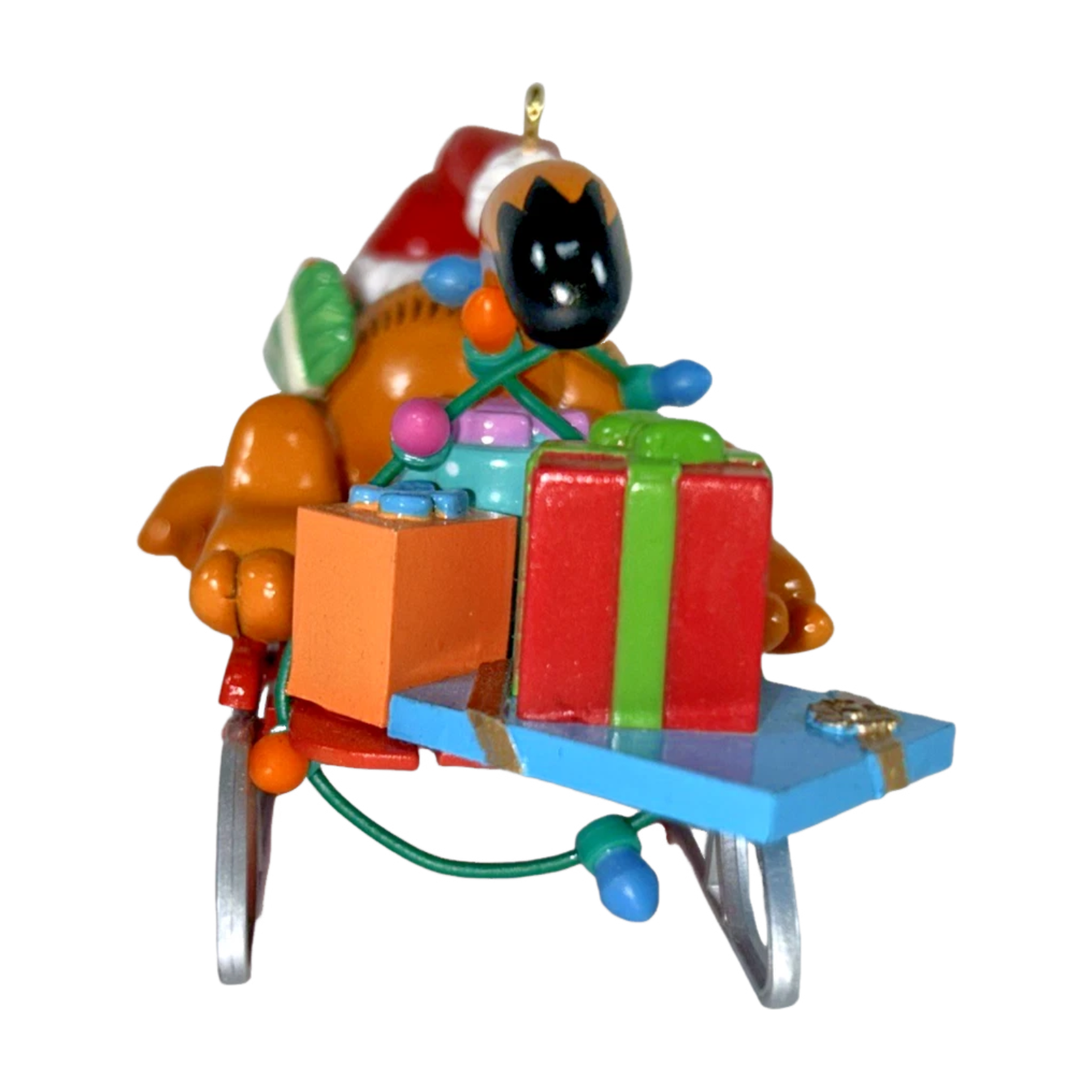 Get ready for a purr-fectly funny holiday with the vintage “Here Comes Santa Paws – Here Comes Garfield” ornament by Enesco, item 572535. This playful collectible features Garfield dressed as Santa Claus, complete with a red hat, fluffy trim, and his trademark mischievous grin. Hand-painted with bright, festive colors, it captures the humor and charm that make Jim Davis’s Garfield a timeless favorite. A must-have for Garfield fans, cat lovers, and Enesco collectors, this ornament adds a cheerful and nostalgic touch to any Christmas tree or holiday display.