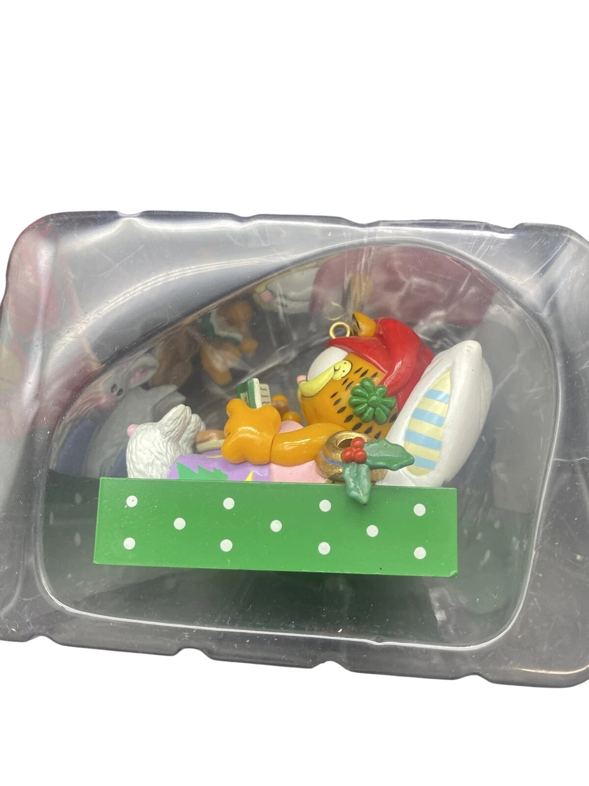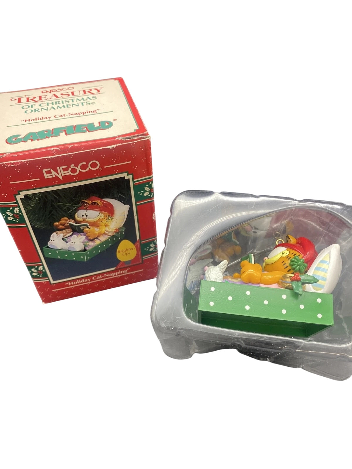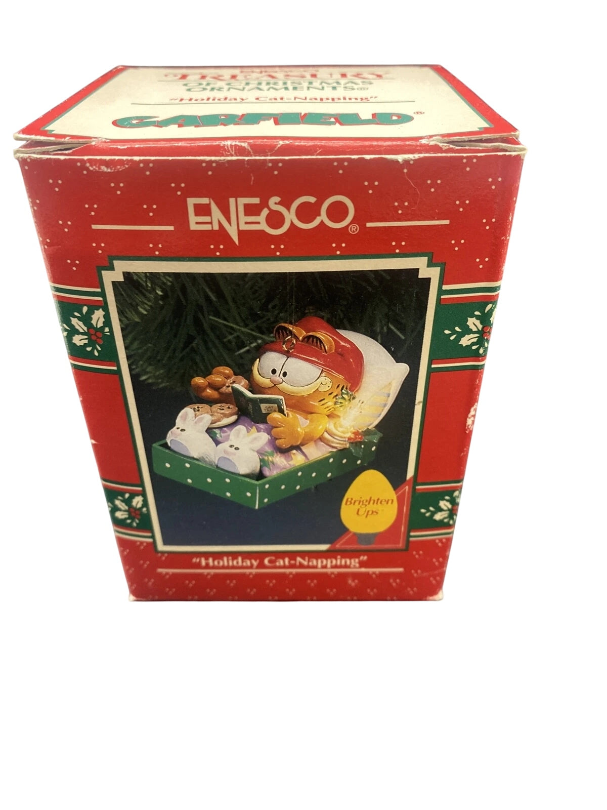 Snooze through the season with the Enesco “Holiday Cat-Napping” ornament featuring Garfield, everyone’s favorite lazy orange cat. This hilarious collectible shows Garfield curled up in a cozy Santa hat, taking his well-deserved nap after too many holiday treats. Hand-painted with Enesco’s classic craftsmanship and bold cartoon colors, it perfectly captures the humor and personality of Jim Davis’s iconic character. A must-have for Garfield fans and vintage ornament collectors, this piece brings laughter and a touch of feline mischief to your Christmas décor.