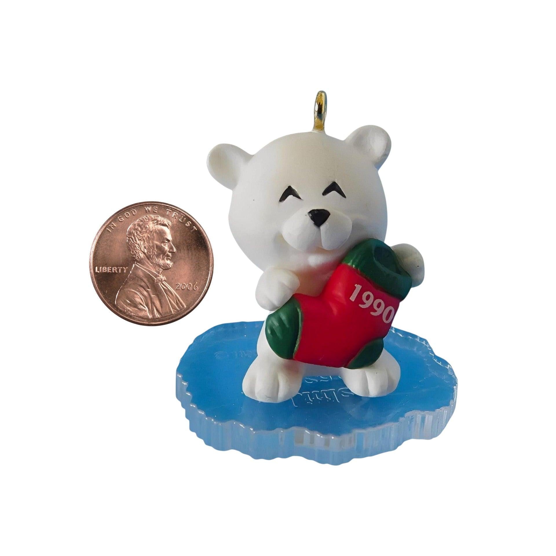 This 1990 ornament features a sweet little bear bundled up for winter as part of the Frosty Friends series. The design typically shows the bear dressed in cozy cold-weather accessories, capturing the playful and heartwarming spirit that defines the early years of this beloved Hallmark series. With its gentle expression and classic winter styling, the ornament makes a charming addition to Frosty Friends collections. It usually comes packaged with its original Hallmark box and is intended for decorative display only. There are no lights, sound, or motion features, so no batteries, cords, or light strings are required.