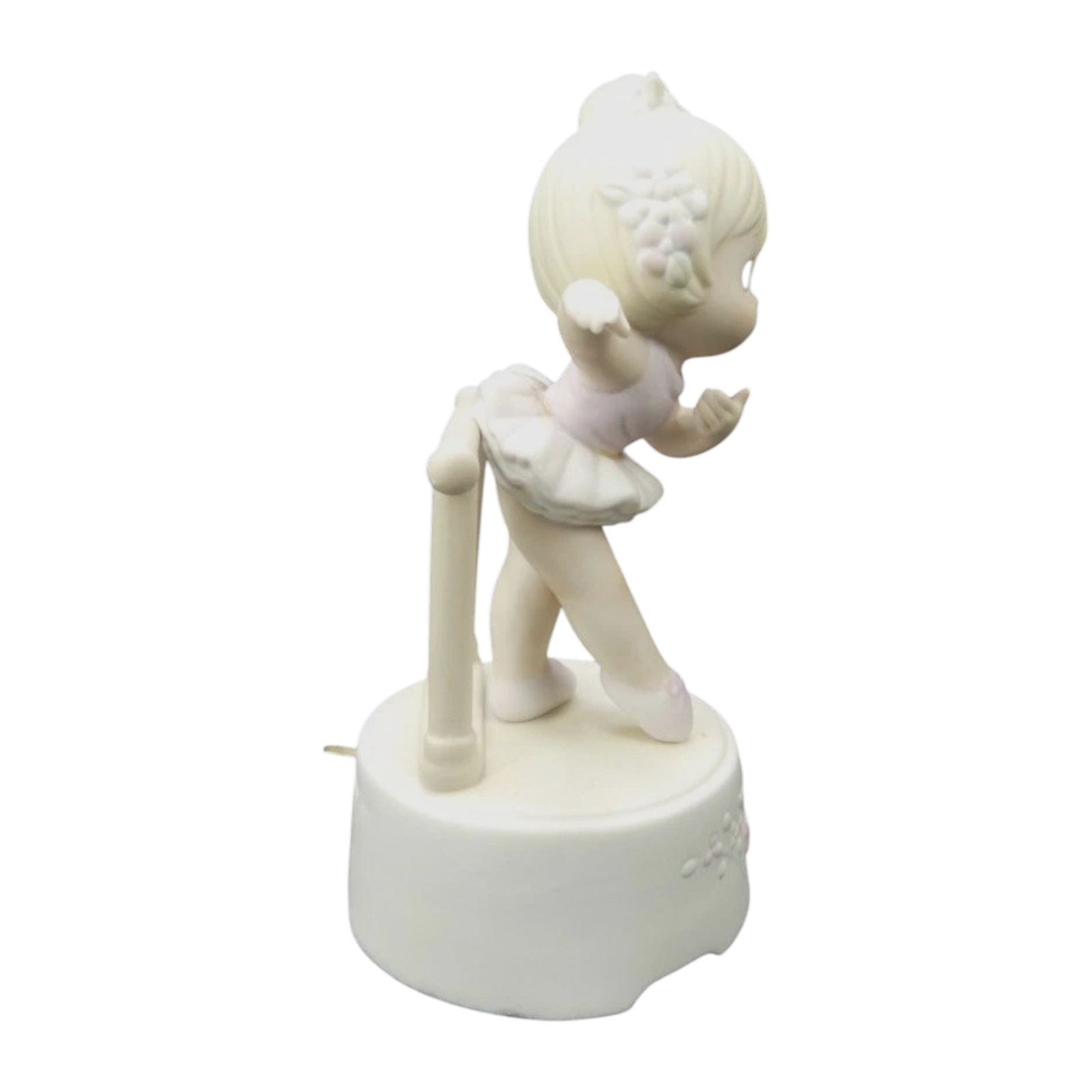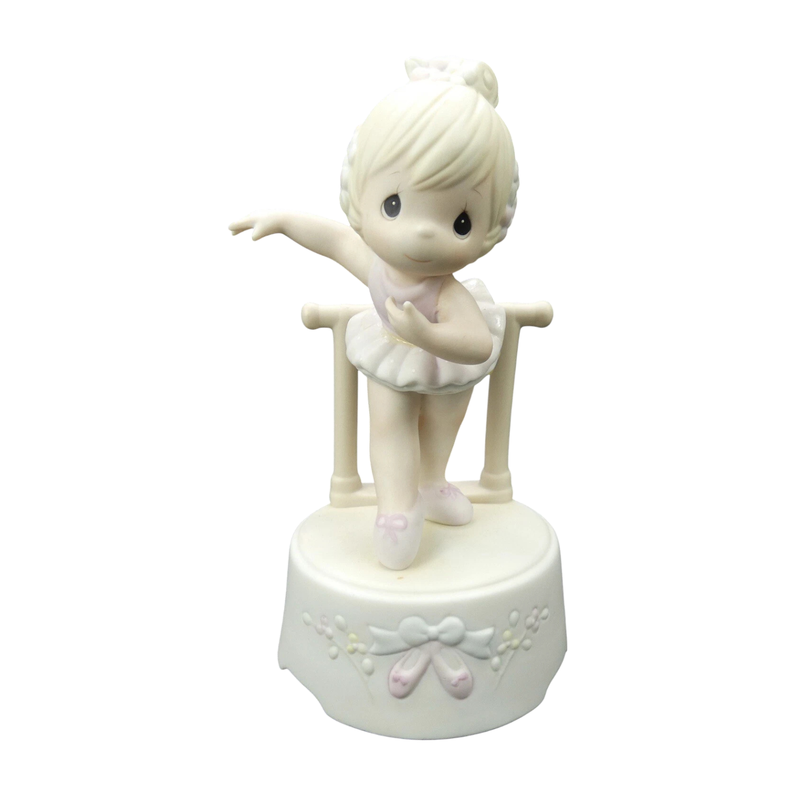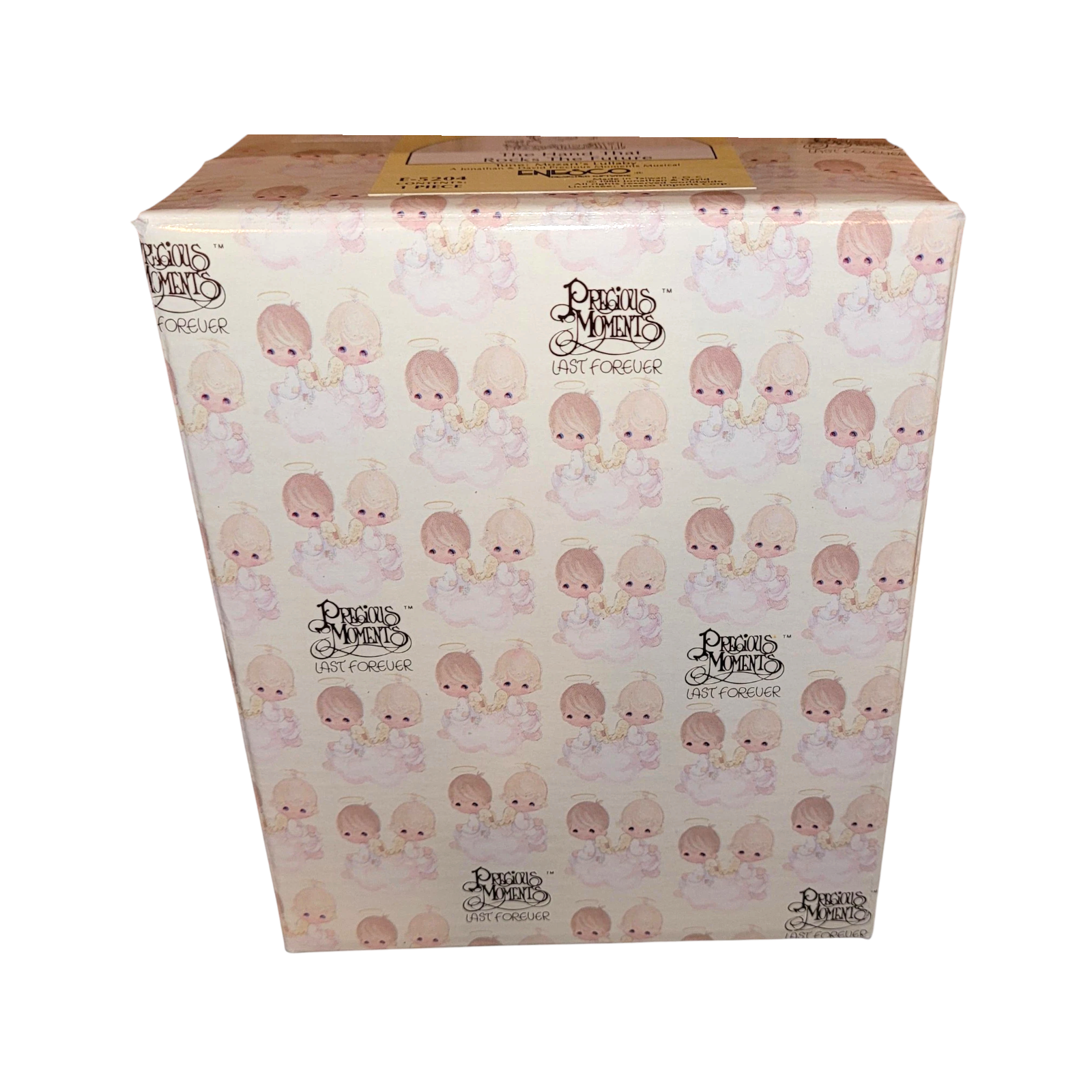 This 1990 Enesco ornament, “Lord, Keep My Life in Balance,” from the Precious Moments collection, features a sweet childlike figure balancing carefully on a tightrope or seesaw, representing faith, balance, and trust in God’s guidance. The design carries the signature Precious Moments style — soft pastel colors, expressive teardrop eyes, and a gentle, prayerful mood. Each ornament was originally sold boxed with a gold hanging cord attached. It requires no batteries, cords, or light strings and has no motion or sound — a purely decorative collectible piece.