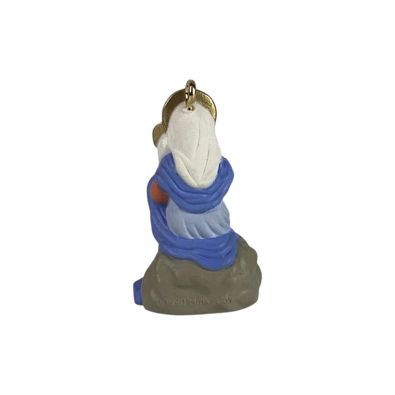 Gentle and timeless, the 1990 Madonna and Child miniature ornament beautifully portrays Mary tenderly holding the infant Jesus, each halo glowing in subtle gold detail. This collectible figurine typically arrives mint-in-box with the original Keepsake Miniature packaging and hanging loop. No batteries, cords, or adapters—this religious ornament is purely decorative and ready for display on tabletop trees or nativity scenes.