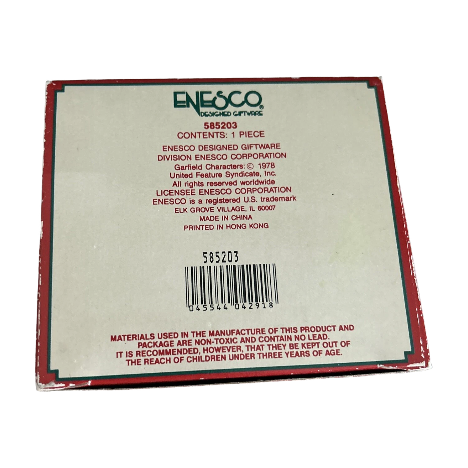 Add a spin of holiday fun with the vintage “Merry Christmas Go-Round” ornament by Enesco, item 585203. This festive collectible features Garfield riding a merry-go-round horse, decked out for Christmas with bright colors and a playful grin. Hand-painted with Enesco’s signature attention to detail, the ornament captures the humor and cheer that make Garfield a beloved holiday favorite. A perfect gift for fans of Jim Davis’s classic comic cat or vintage Enesco ornaments, it brings nostalgia, whimsy, and joy to any Christmas tree.