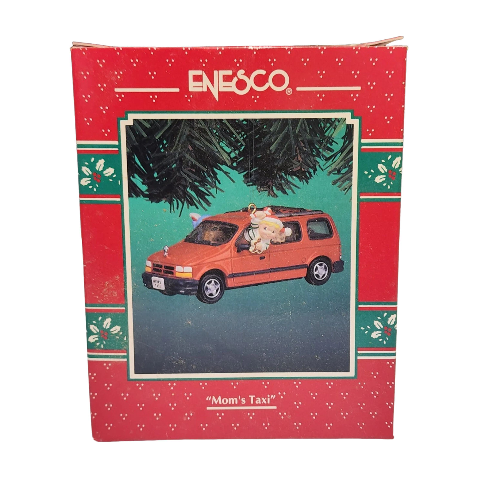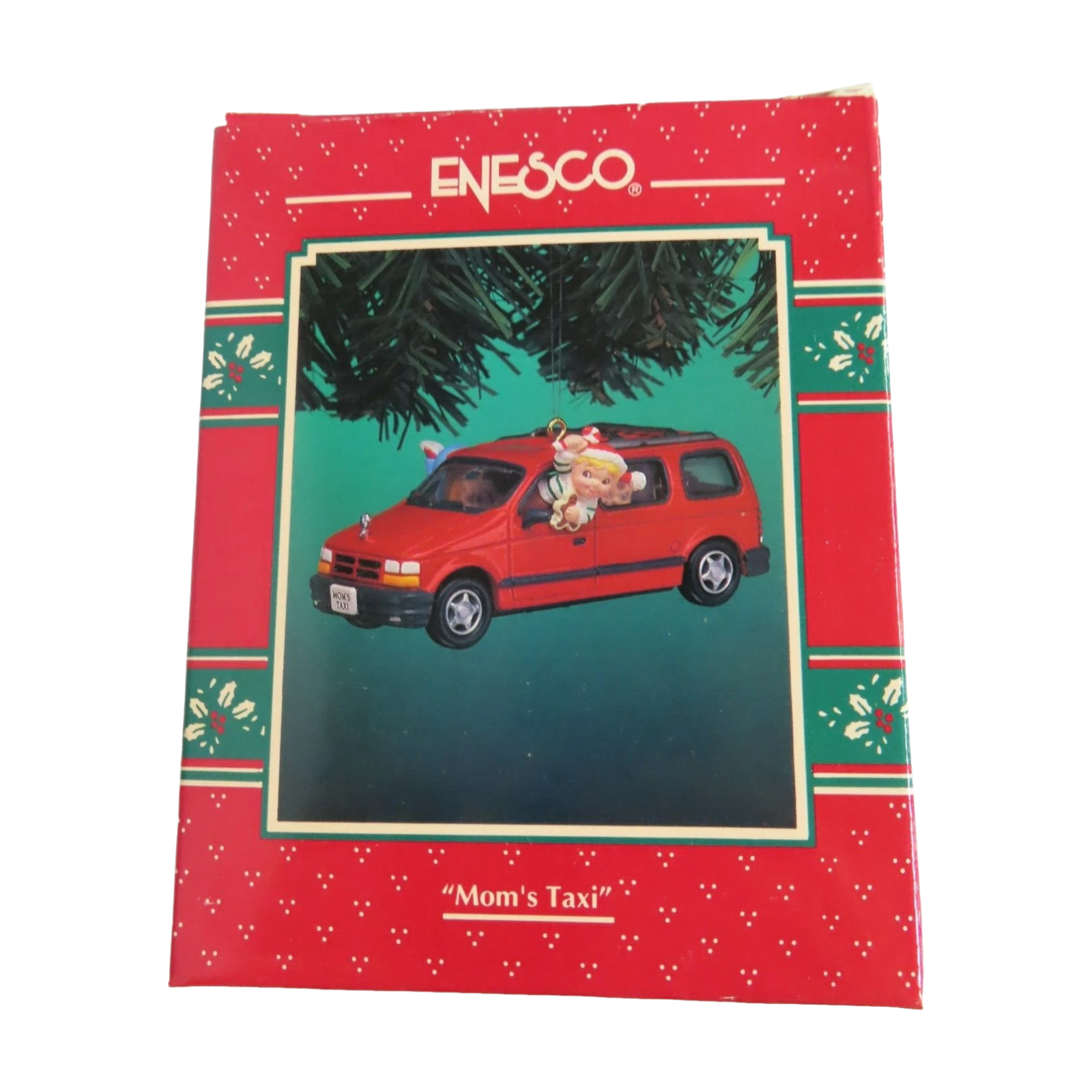 This charming holiday ornament features a red minivan styled after a family “Mom’s Taxi” chauffeur-vehicle, complete with roof rack, kids in the back windows and a playful “MOM’S TAXI” license-plate detail. The design captures the bustling holiday family-scene with festive finishes, cheerful colours and the collectible flair collectors expect from Enesco’s vehicle-themed “Treasury of Christmas” series. A fun gift for moms, families, or ornament-collectors who appreciate both humor and holiday nostalgia.