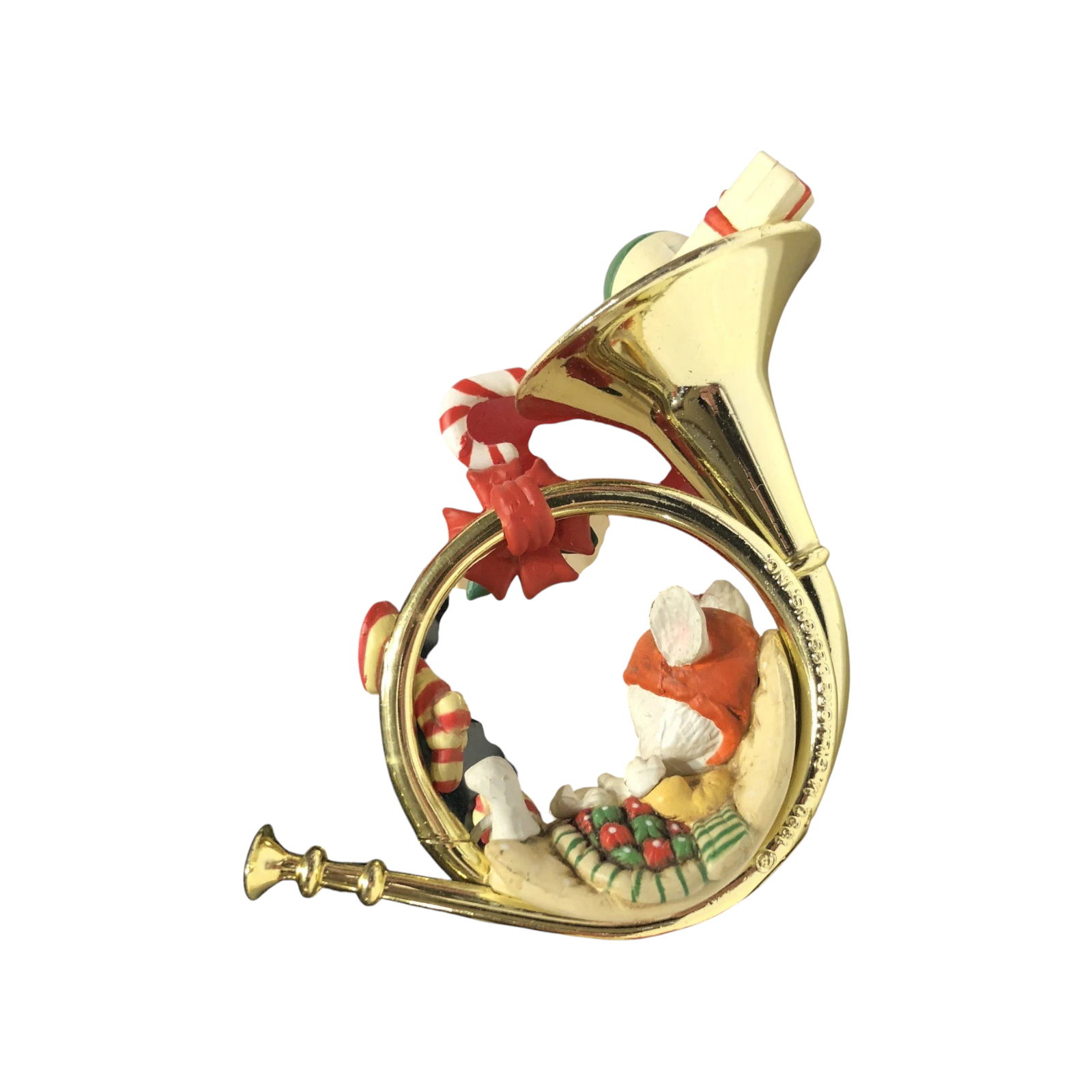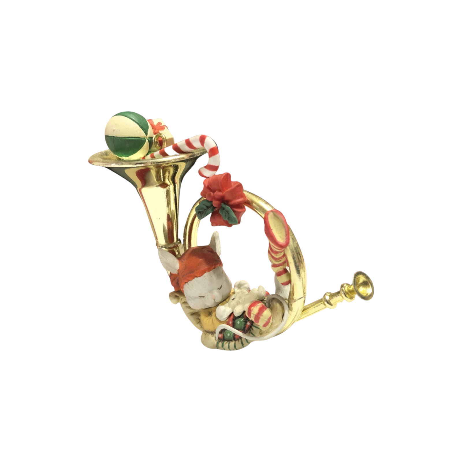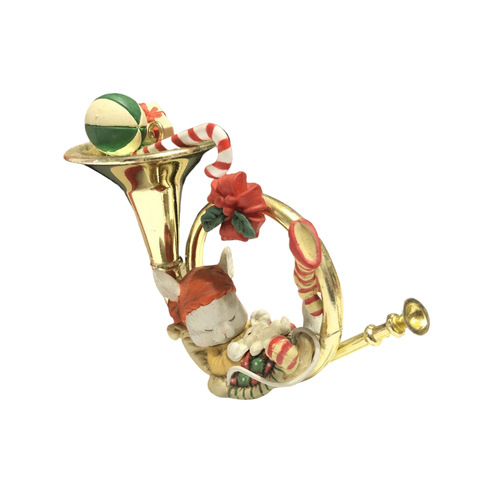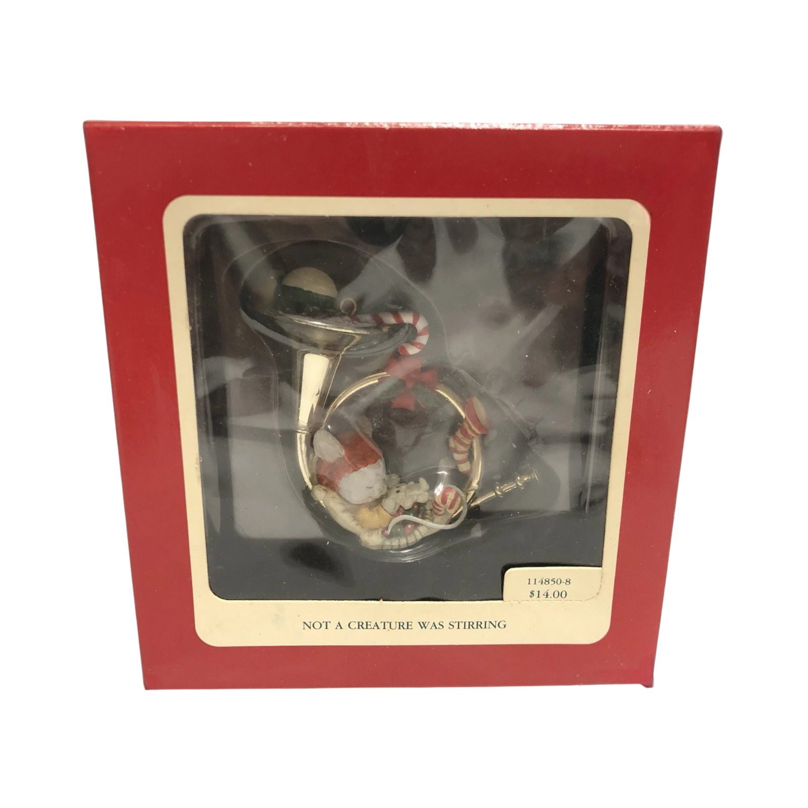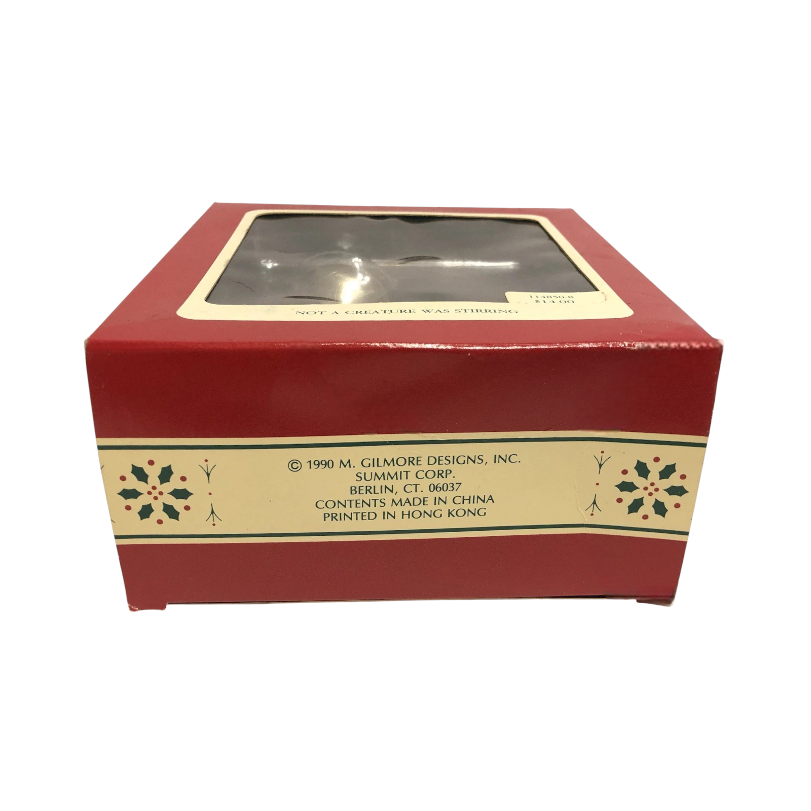 This 1990 “Not a Creature Was Stirring (Mouse)” ornament portrays a peaceful holiday scene: a little mouse curled up in a cozy bed or nestled inside a small holiday prop, evoking the classic “’Twas the Night Before Christmas” theme. The piece is part of the Heirloom Collection and crafted in painted molded plastic with fine detail and soft vintage colors. It offers nostalgic charm for collectors of animal-themed or vintage holiday ornaments, and fits well on a tree, in a display, or as part of a festive keepsake collection.