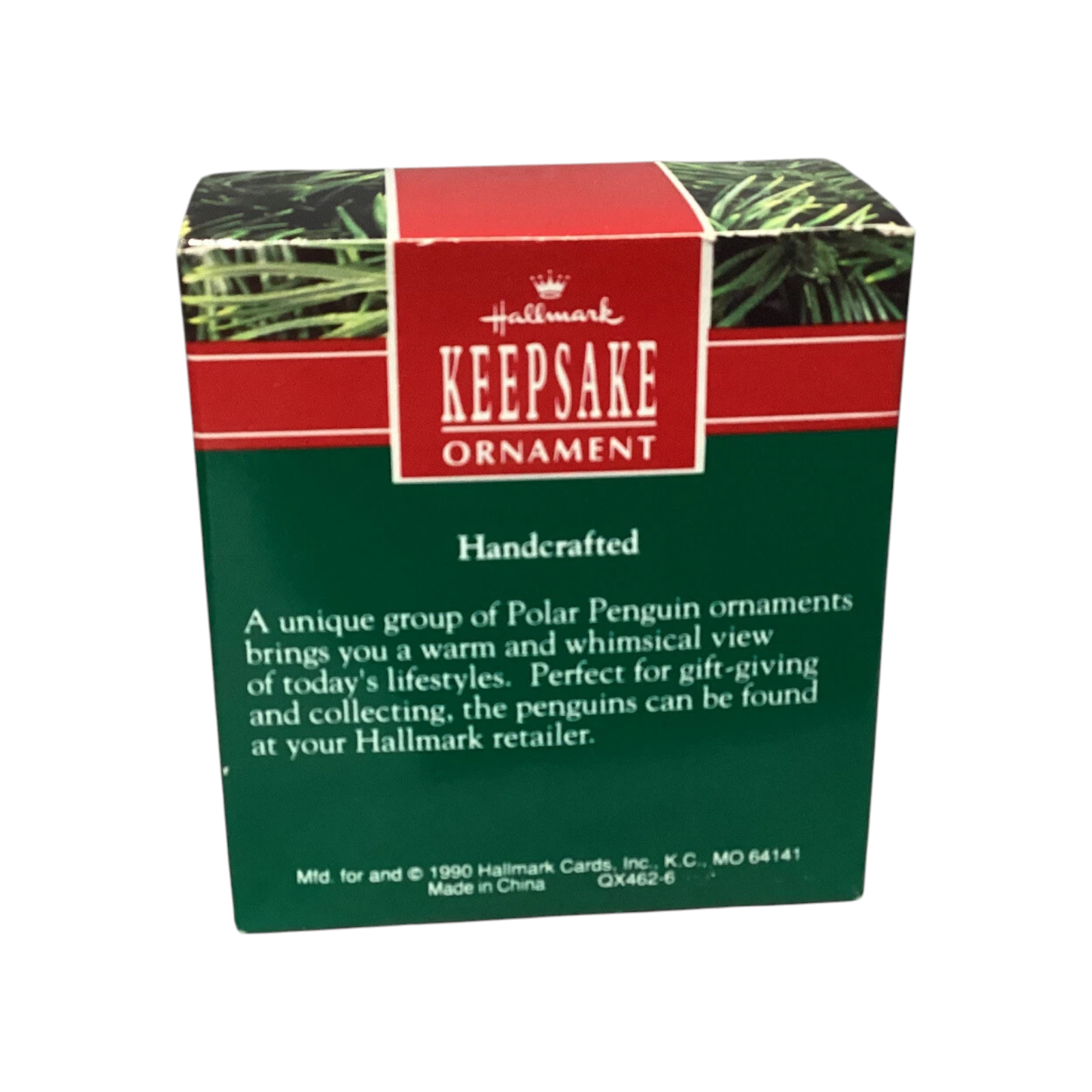 Celebrate winter togetherness with the 1990 “Polar Pair” ornament from Hallmark (SKU QX4626). This design features a parent penguin carrying a baby penguin on its back, sculpted by artist Bob Siedler. Crafted with resin and finished in a classic miniature size measuring 2.142″ H × 1.315″ W × 0.966″ D (≈ 5.4 × 3.3 × 2.5 cm) it embodies the warmth of the season and adds charming character to your tree. As a vintage piece from 1990, it carries collectible appeal and nostalgic value for classic Hallmark Keepsake collectors.