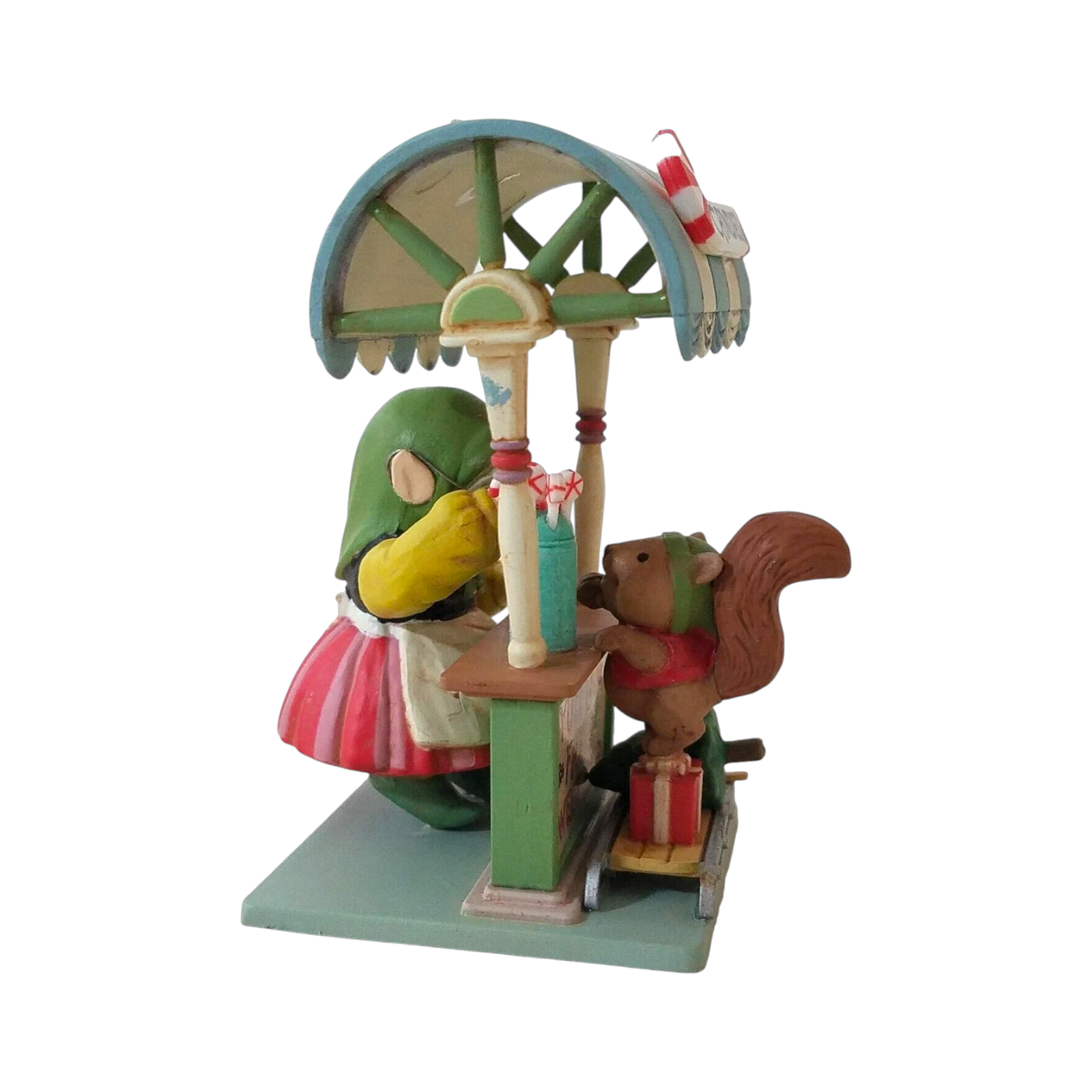 Step into a cozy holiday marketplace with the 1990 Enesco “Santa’s Sweets” ornament — the second issue in the enchanting “Yuletide Fair” series. This beautifully detailed collectible depicts Santa Claus inside a charming Christmas sweet shop, surrounded by candy canes, cakes, and festive confections. Crafted in hand-painted resin with warm, nostalgic color tones, it captures the magic of old-fashioned holiday cheer. A perfect addition for Enesco collectors and anyone who loves vintage Christmas window scenes filled with whimsy and warmth.