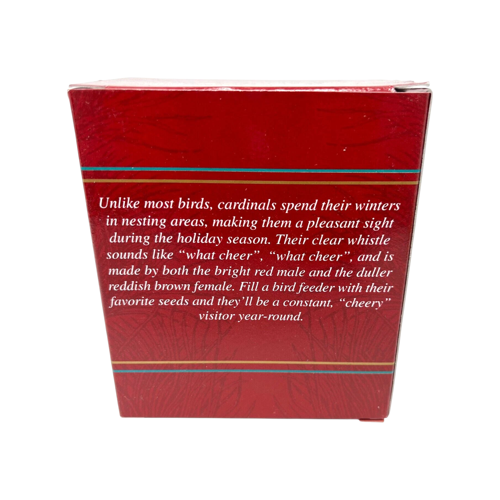 This 1990 Sing a Song of Christmas (Bird) ornament from the Carlton Cards Heirloom series beautifully captures the holiday spirit through a melodic nature motif. Featuring a vibrant cardinal perched on a snow-laden branch, the ornament showcases fine sculpted detail and rich painted finishes accented with holiday touches like holly leaves and berries. A hanging loop allows for easy display on a tree or in a collector cabinet, while the classic design appeals to both bird-theme enthusiasts and vintage ornament collectors. With its timeless charm and craftsmanship, it makes a wonderful addition to any festive décor or holiday collection.