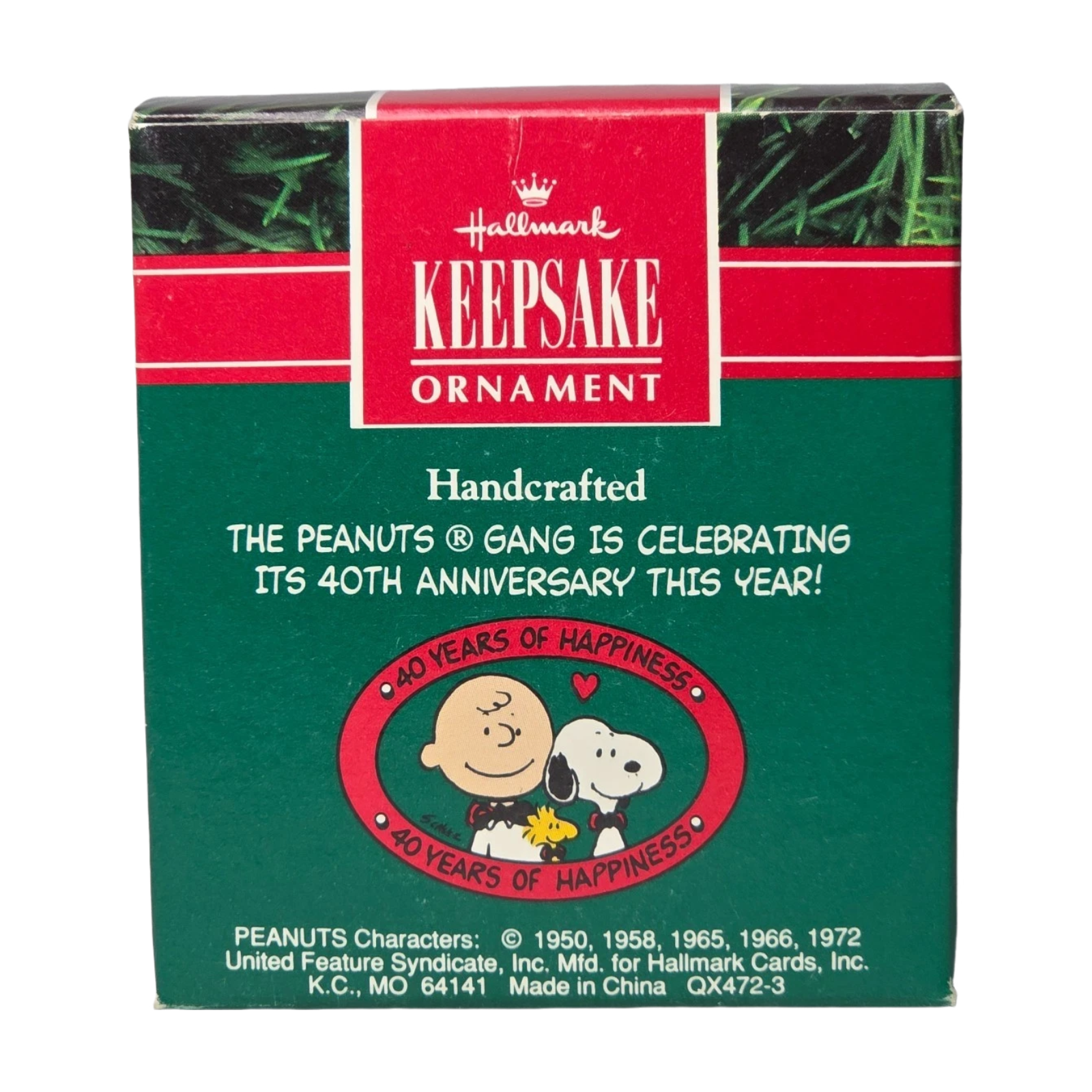 Celebrate the Peanuts gang’s 40th anniversary with the charming 1990 Snoopy and Woodstock ornament. It features Snoopy seated, hugging his tiny friend Woodstock, both dressed in cozy winter hats and scarves. This heartwarming keepsake includes the original red‑and‑green Hallmark Collector’s Series box and the gold-tone hanger loop when sold mint in box. No power is required—just hang it to enjoy its nostalgic joy.