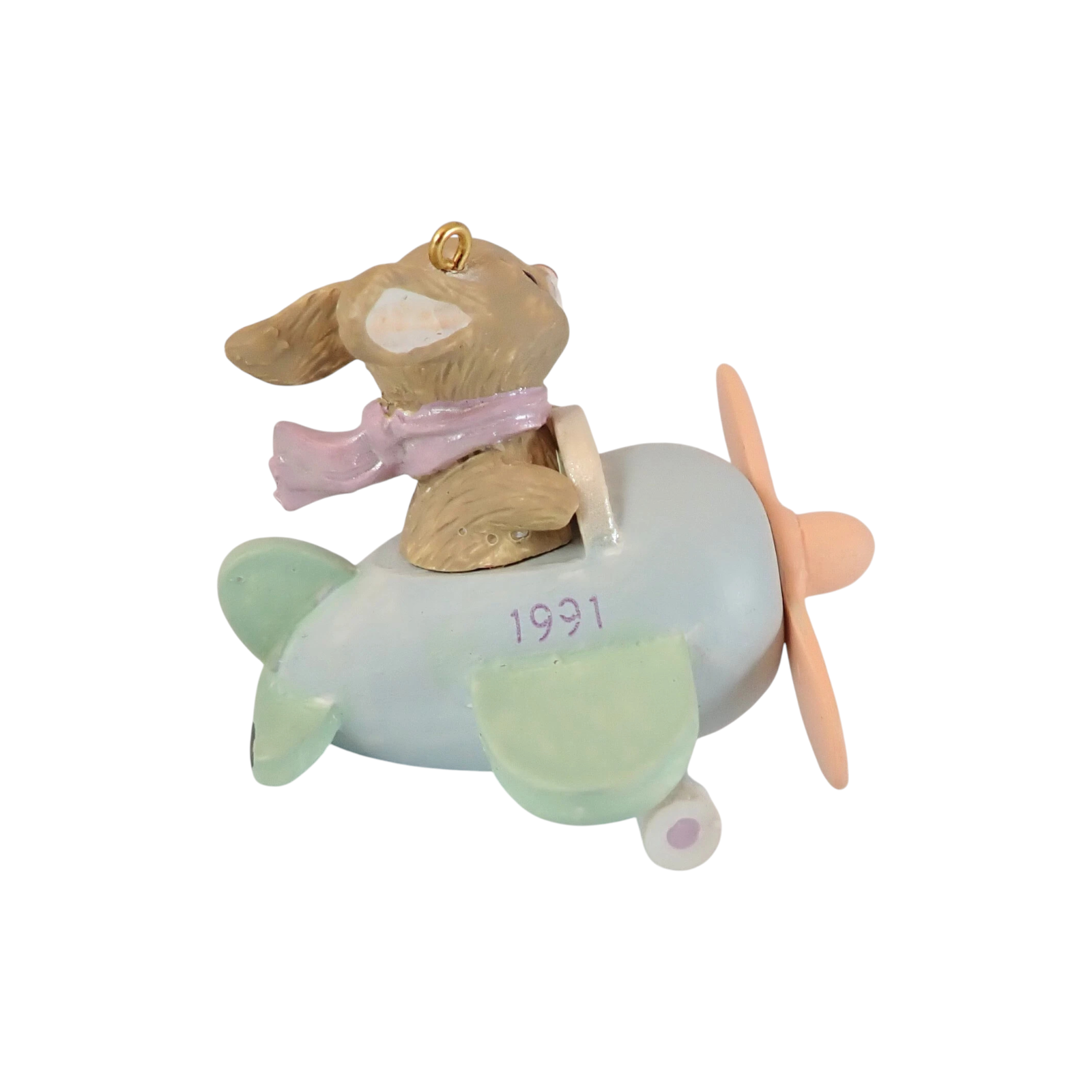 Celebrate springtime with the 1991 “Spirit of Easter” Keepsake Ornament by Hallmark. This charming piece features a whimsical bunny pilot soaring in a pastel-colored airplane, capturing the playful joy of the Easter season. Crafted with Hallmark’s quality finish and rich detailing, it pairs beautifully with both holiday trees and spring-themed décor. A delightful find for collectors of Easter ornaments and fans of vintage Keepsake pieces alike.