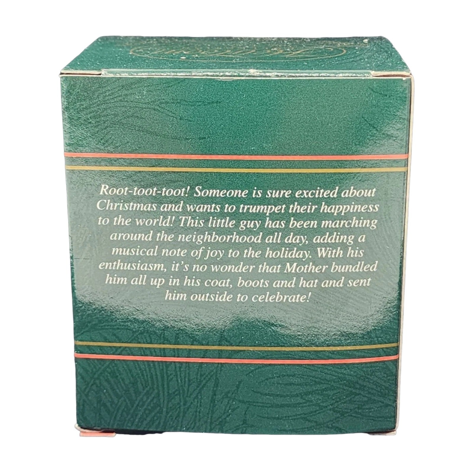 This charming “Sweet Soloist” ornament from Carlton Cards depicts a graceful holiday musician caught mid-performance, capturing the joyful spirit of a festive melody. The figure features finely painted detail — perhaps a solo vocalist or instrumentalist — dressed in seasonal attire with a motif of music notes, ribbons or decorative accents, lending it both elegance and collector appeal. Molded in plastic or resin with a hanging loop, this piece bridges the world of musical décor and vintage holiday ornaments. Perfect for music lovers, tree display enthusiasts and those building a themed holiday collection, it brings a refined yet whimsical note to any setting.