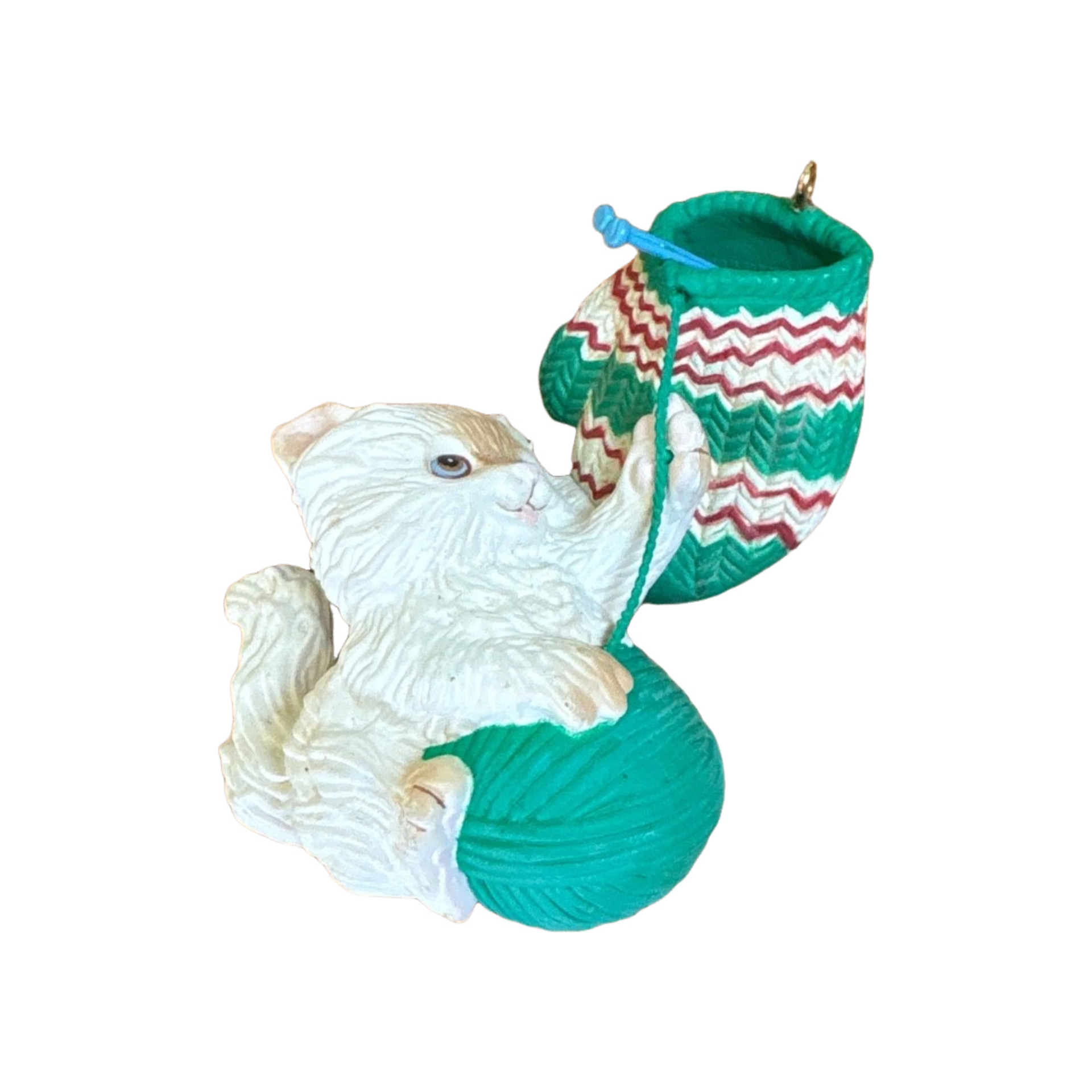 This adorable Wake Me When It’s Christmas ornament from Carlton Cards features a sleepy kitten curled up in a festive holiday scene, perfectly capturing the cozy stillness of wintertime naps. Sculpted with soft fur texture, a sweet expression, and warm painted holiday accents—such as a stocking, blanket, or cozy basket—the ornament brings irresistible charm to any Christmas tree. Its petite size and expressive detail make it especially appealing to cat lovers, collectors of miniature ornaments, and fans of nostalgic 1990s holiday décor. This cute, heart-warming piece adds a quiet, snuggly touch of Christmas cheer to your seasonal display.