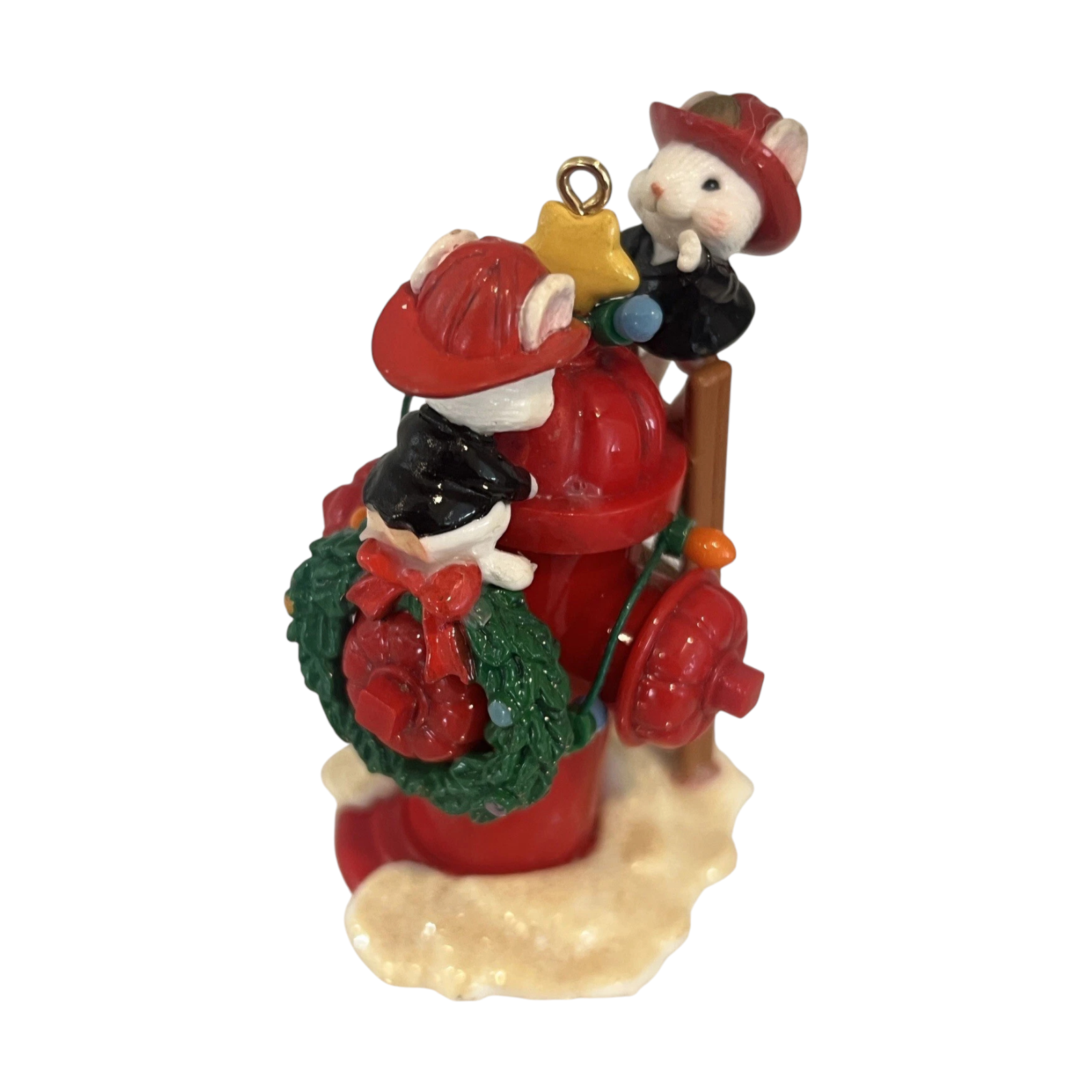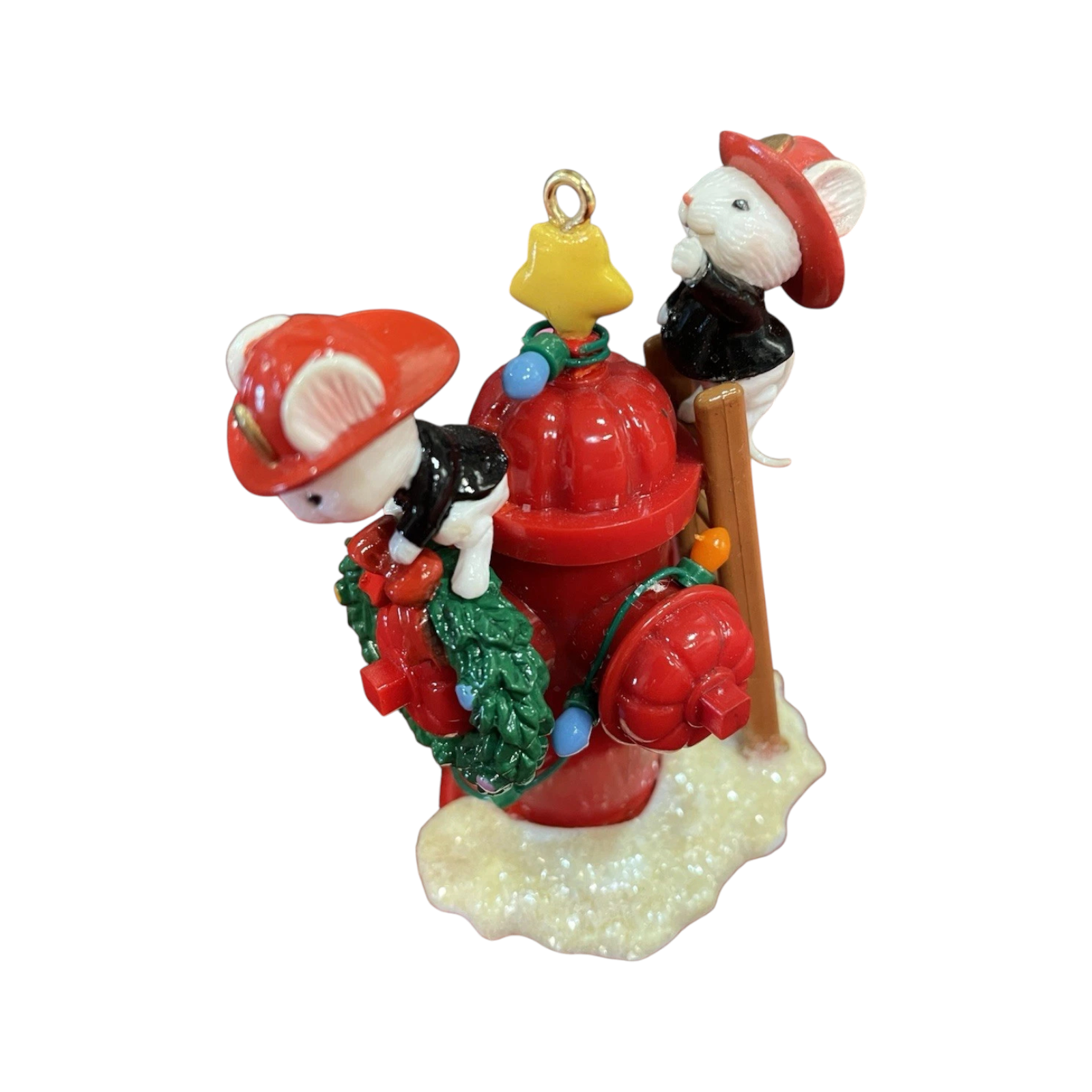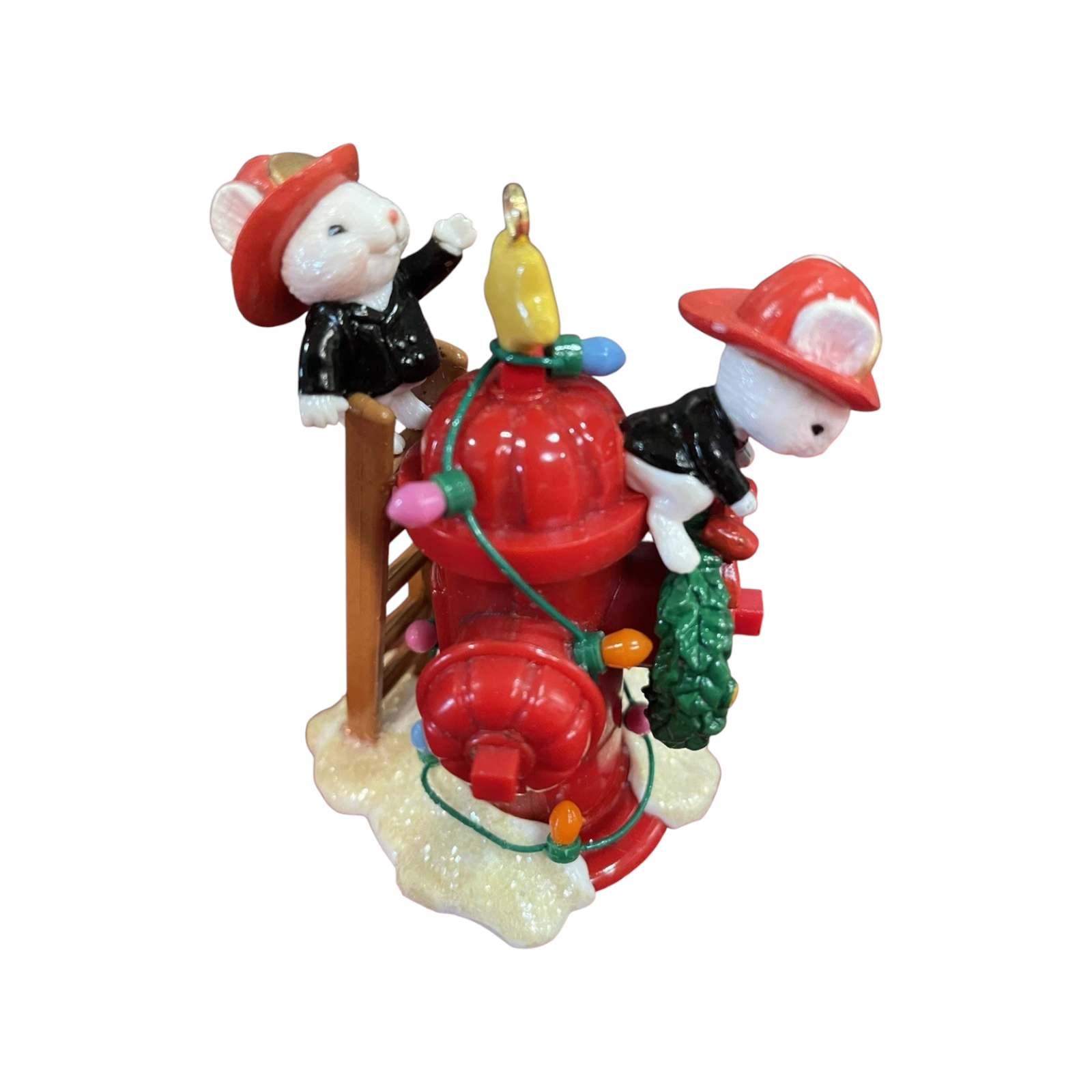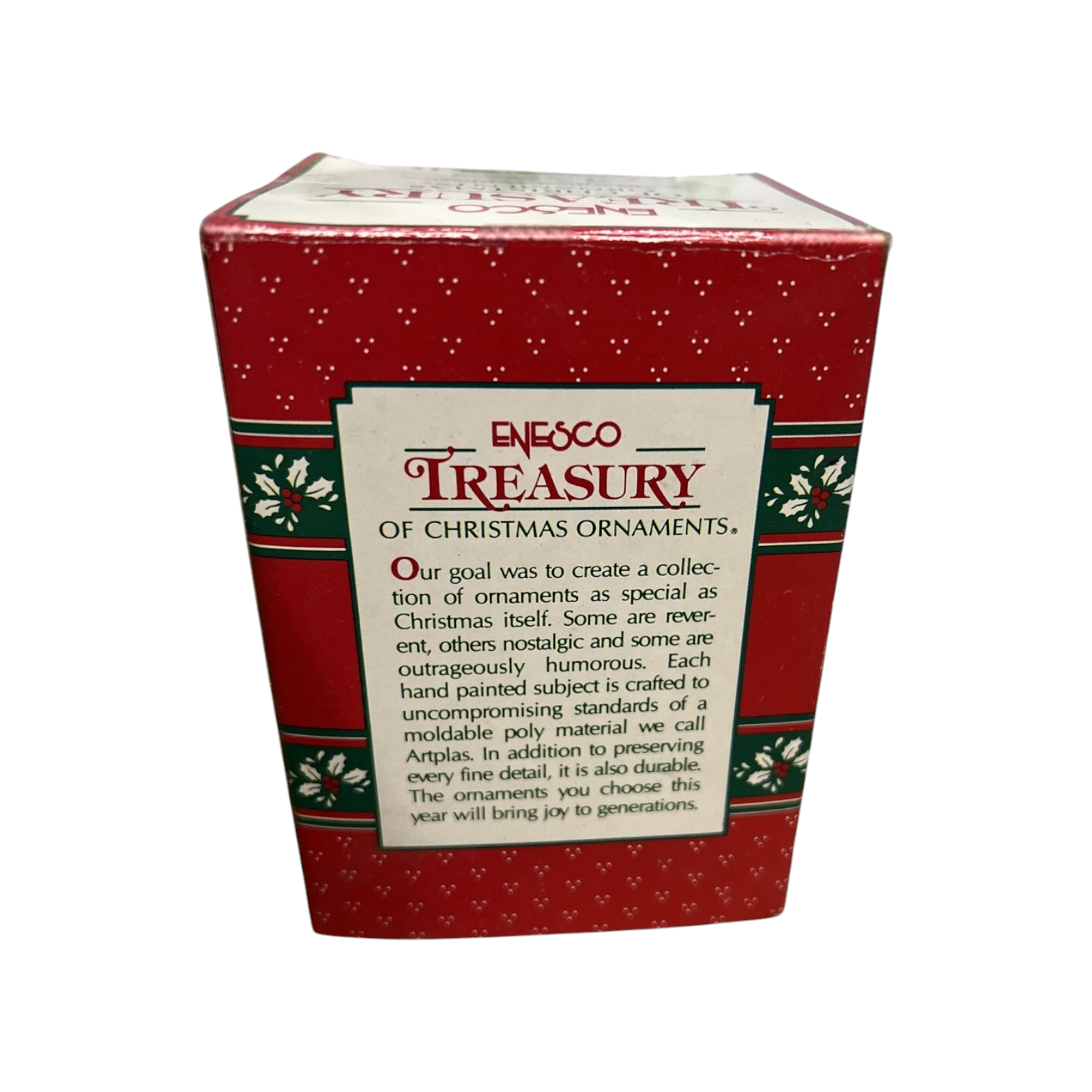 Light up your holidays with the 1990 Enesco “Warmest Wishes” ornament — the first issue in the “North Pole Fire Department” series. This charming collectible features a cheerful firefighter bear in full holiday gear, holding a hose ready to spread Christmas cheer instead of water! Hand-painted with bright reds and golds, this ornament showcases Enesco’s delightful humor and craftsmanship. A perfect keepsake for firefighters, collectors, and lovers of whimsical holiday décor, it brings warmth, bravery, and festive fun to any Christmas tree.