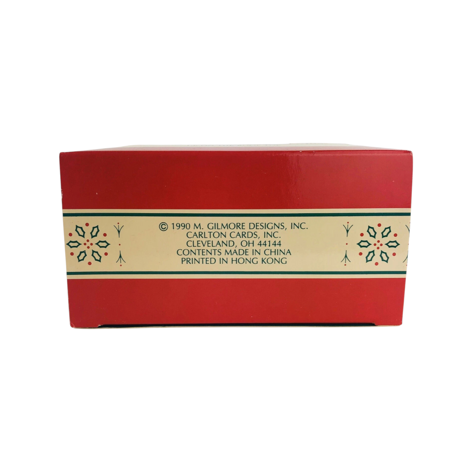 This adorable Wrapped Up in Christmas ornament from 1990 features a playful young reindeer tangled up in festive holiday ribbon, capturing the fun, lighthearted mishaps that make Christmas magical. Sculpted with expressive eyes, soft fur detailing, and bright seasonal colors, the little reindeer appears mid-twist as bows, ribbon, or garland wrap around its body in a charmingly mischievous pose. Carlton’s early-1990s craftsmanship shines through in the textured sculpting and warm, nostalgic styling. Perfect for reindeer collectors, fans of whimsical ornaments, and anyone who loves playful Christmas characters, this delightful piece brings personality and vintage charm to any holiday display.