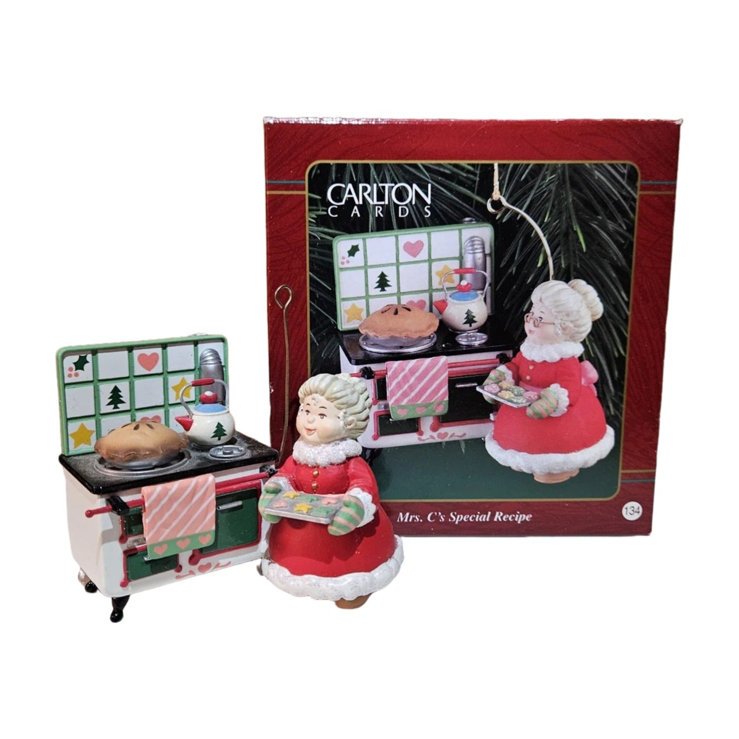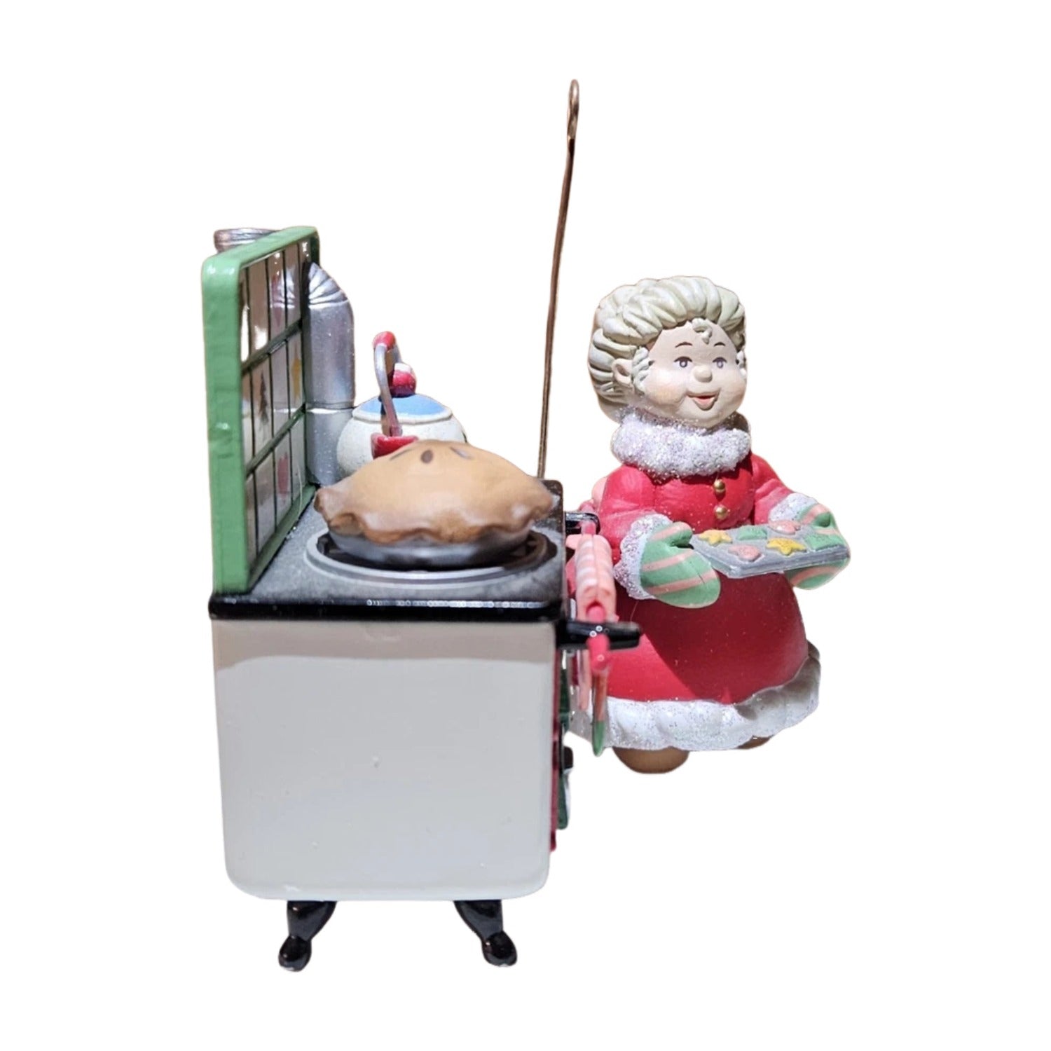 Celebrate holiday baking nostalgia with the Mrs. C’s Special Recipe ornament from Carlton Cards’ Kitchen-themed Heirloom Collection. The charming design features Mrs. Claus standing proudly by a vintage stovetop, holding a tray of cookies ready to serve. Comes complete with the original Carlton Cards Heirloom box, molded insert, and hang‑tag—perfect for collectors and festive gift-giving.