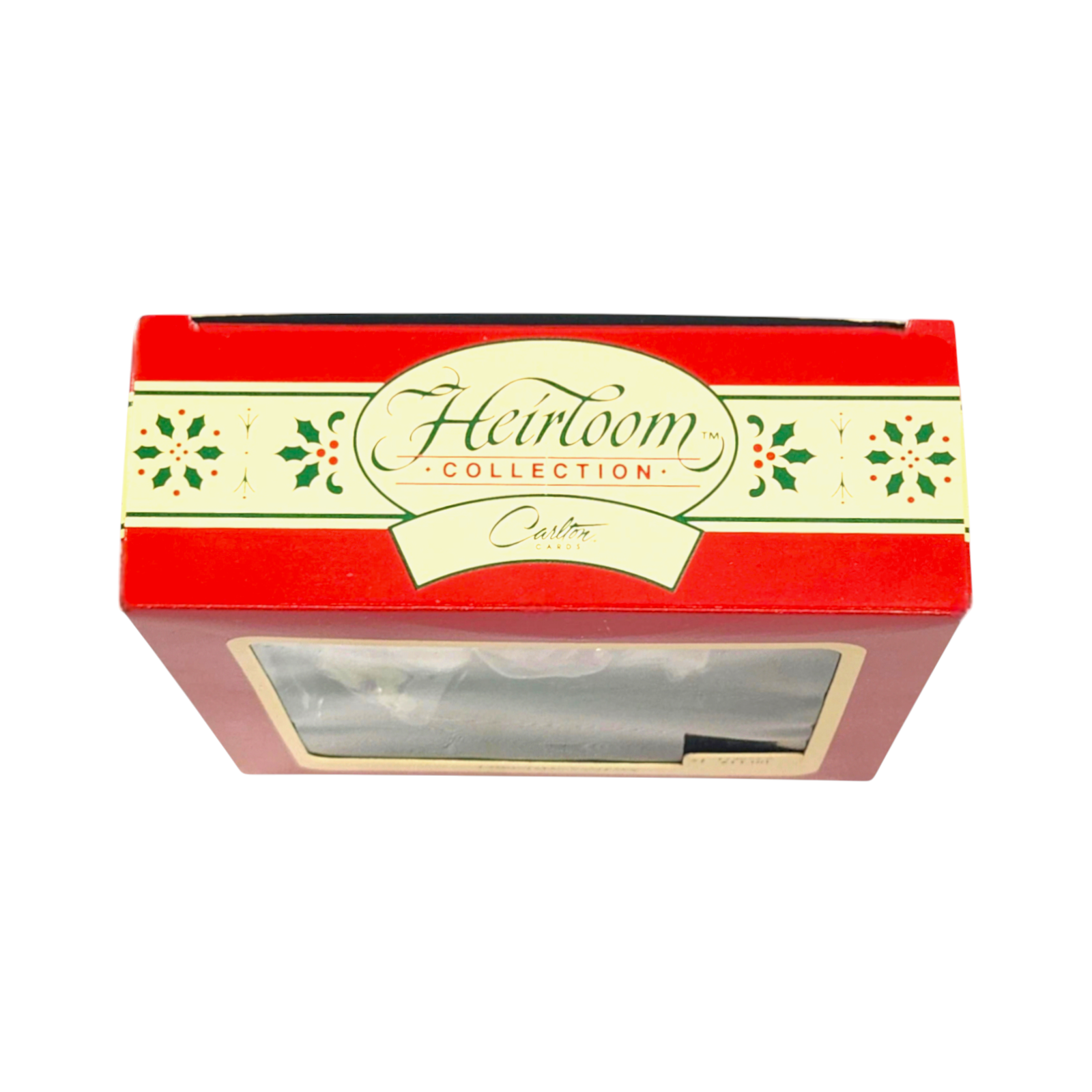 This 1991 “A Little Bit of Christmas (Mouse)” ornament features a charming mouse figure engaged in holiday activity—knitting beside a stocking filled with treats—rendered in classic Heirloom-style detail with bright holiday colors and fine sculpted accents. As the second in the collectible “A Little Bit of Christmas” series, it holds extra appeal for collectors who follow series releases. The design combines whimsical animal character appeal with seasonal charm, making it both a sweet piece of décor and a collectible treasure.