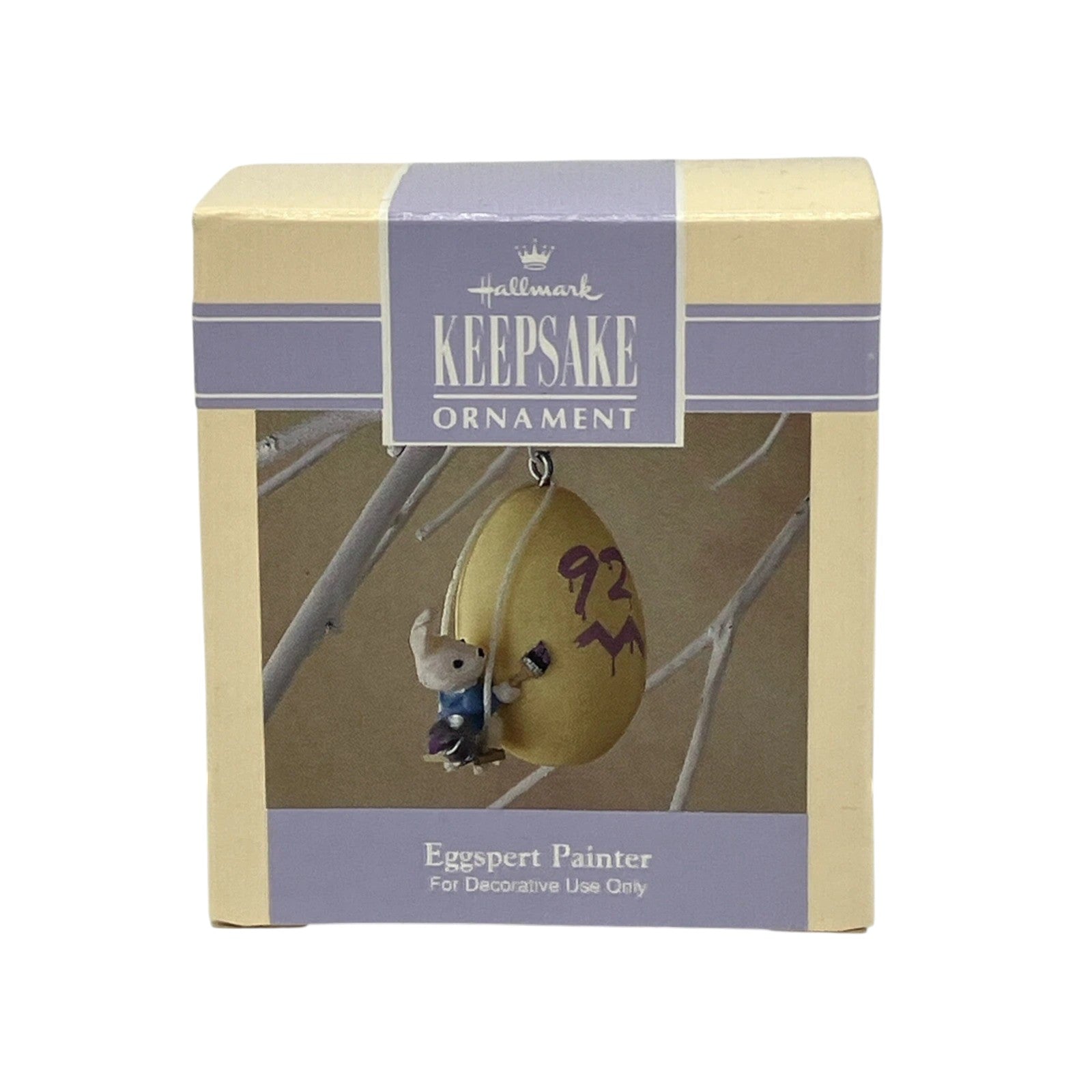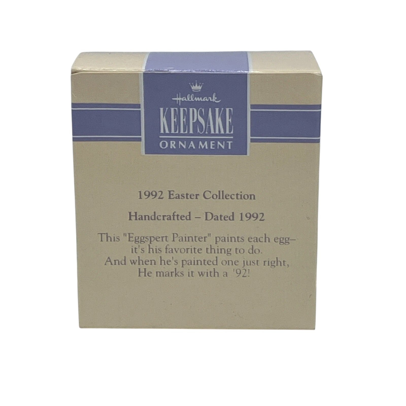 Capture the playful spirit of spring with the delightful 1991 Eggspert Painter (Bunny) ornament. Featuring an adorable bunny leaning against a large pastel egg, brush in hand, painting "92" in cheerful purple, this miniature keepsake is signed by artist Bob Siedler (copyright 1991, released 1992). Crafted with charming detail, it's perfect for Easter décor or collectors. Comes mint-in-box (boxed includes “For Decorative Use Only” label). No power needed—just hang and enjoy the seasonal whimsy.