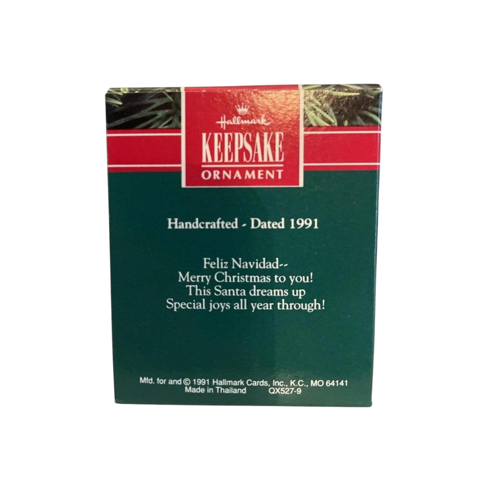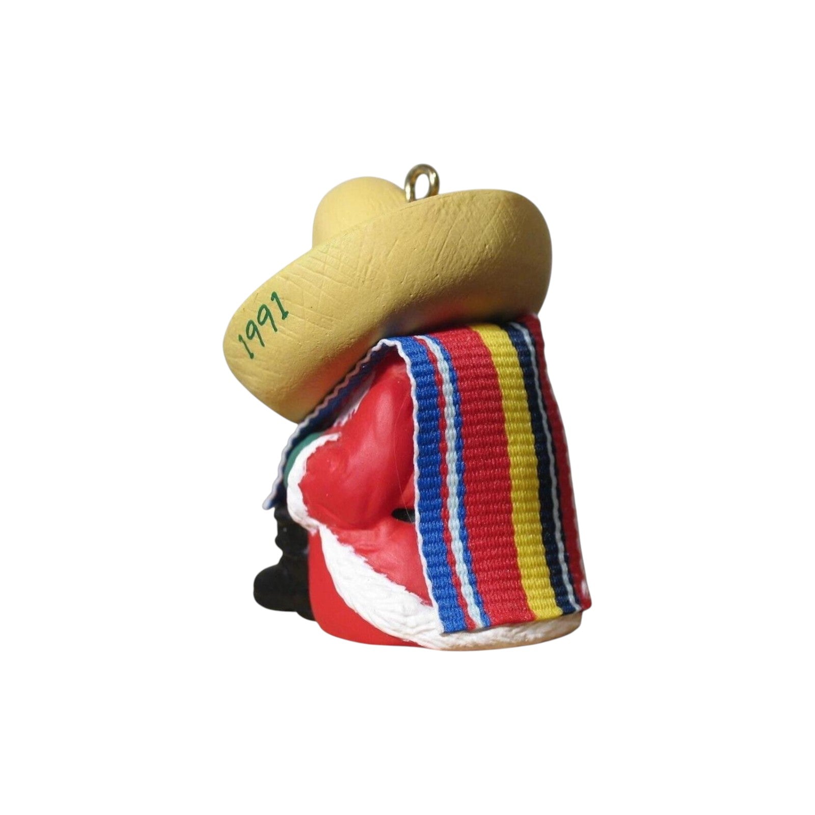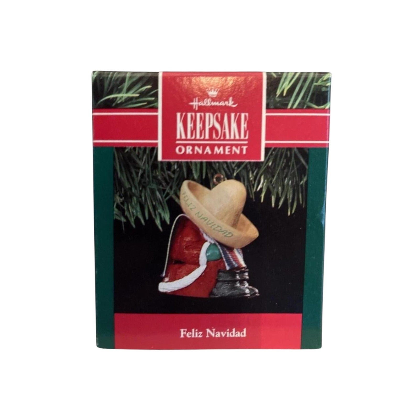 Add festive multicultural charm to your holiday décor with the 1991 Feliz Navidad miniature ornament. This hand‑painted resin features a jolly Santa-style bunny proudly wearing a straw sombrero emblazoned with “Feliz Navidad 1991”, draped in a colorful serape and festive coat. It's part of Hallmark’s Feliz Navidad Series celebrating cross-cultural holiday spirit. The ornament arrives in its original Keepsake miniature box. No batteries or lights are required—pure decoration joy.