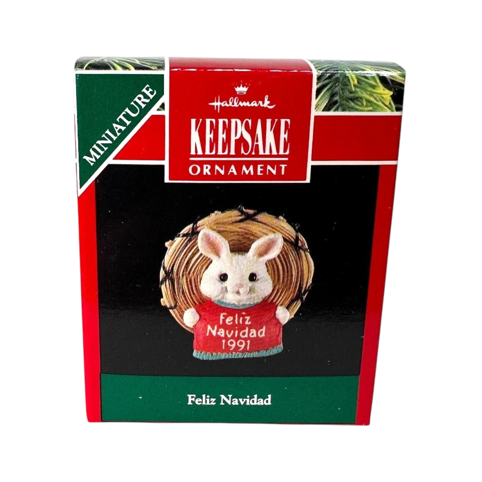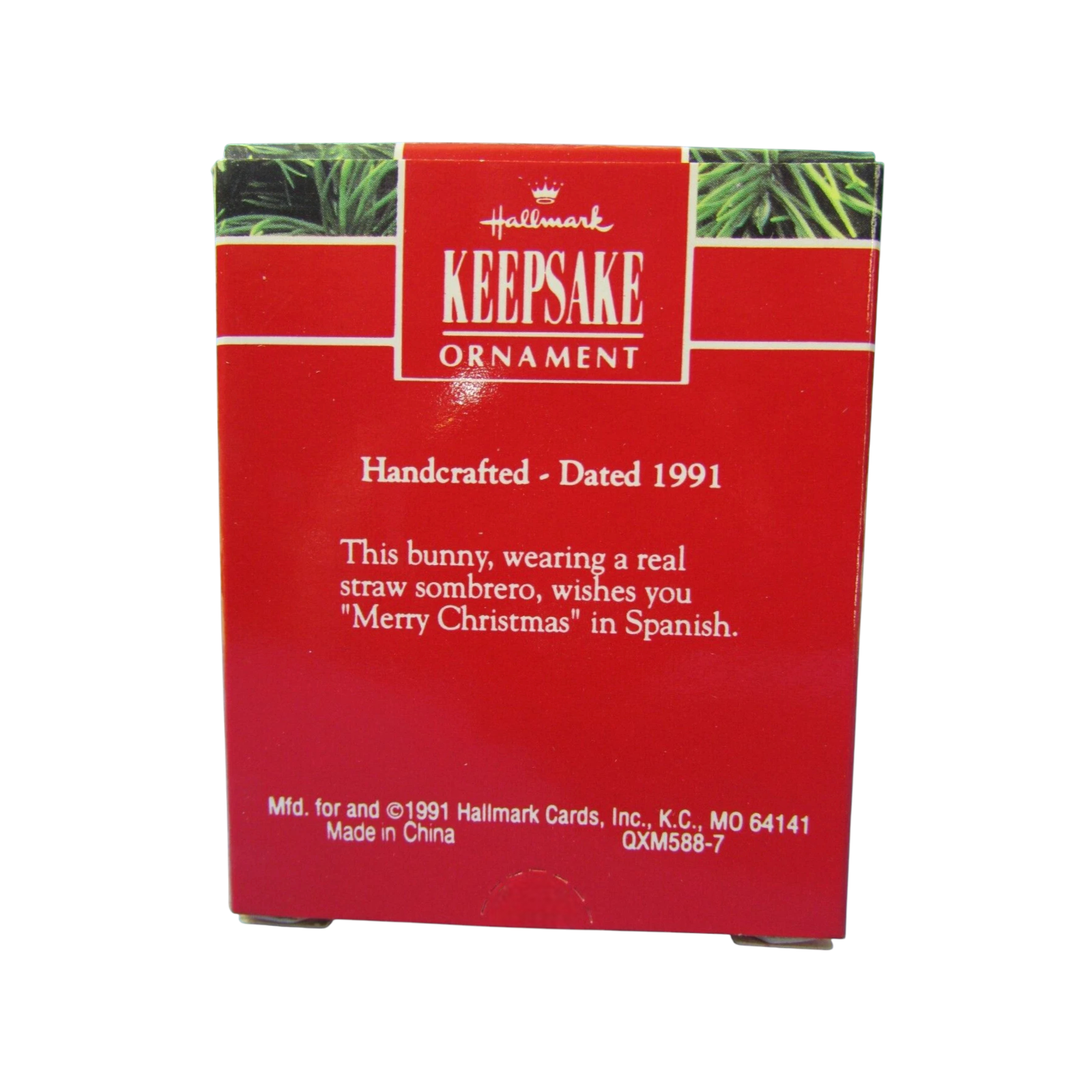 Sprinkle your tree with holiday cheer and a dash of cultural flair with this 1991 Feliz Navidad miniature ornament from Hallmark’s seasonal collection. This petite keepsake showcases a sweet little bunny donning a festive sombrero and a cozy shirt emblazoned with “Feliz Navidad 1991”, radiating both charm and nostalgia. Packaged mint in its original Keepsake box, it requires no power—making it a delightful, ready-to-hang accent for your holiday décor.