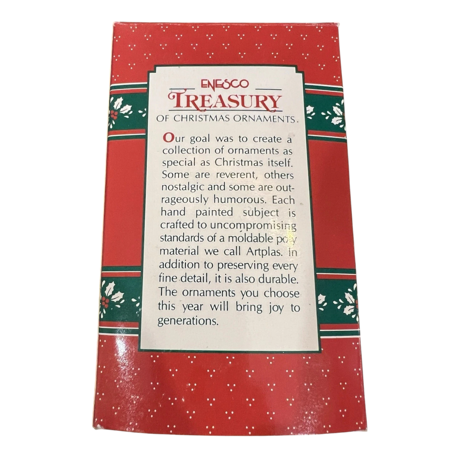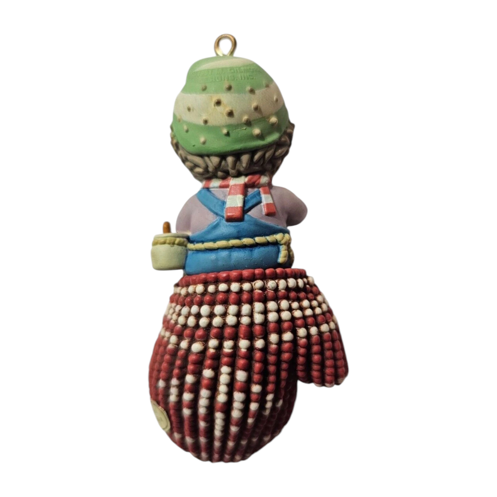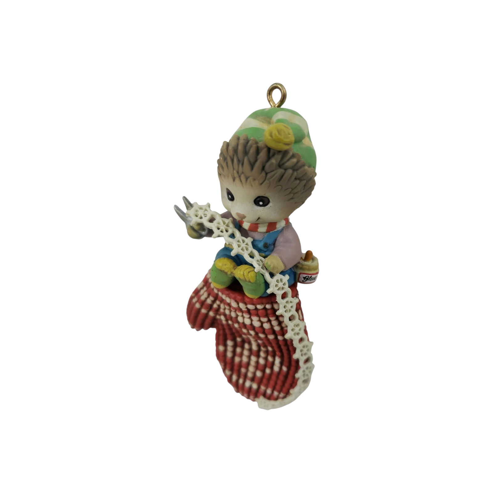 Capture cozy holiday spirit with the 1991 Fittin’ Mittens – Hedgehog ornament from Enesco’s charming Treasury of Christmas collection. This adorable design features a cheerful hedgehog seated inside a giant knit mitten, intently knitting another festive mitten with yarn draped over its lap. The beautifully sculpted details highlight knit textures and tiny painting strokes. The ornament arrives in its original red Enesco retail box and includes the hanging tag. It’s purely decorative—no batteries, cords, or lights required.