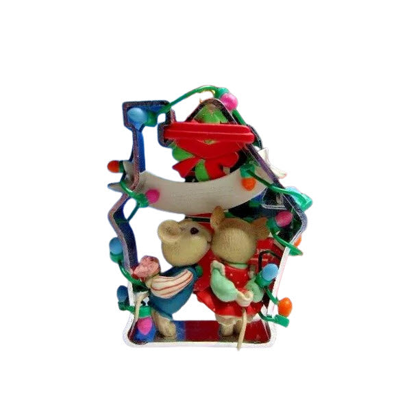 Bring heartwarming charm to your festive collection with the 1991 From the Same Mold (Mouse) ornament from Enesco’s delightful Cookie Cutter Cuties series. This adorable design showcases two mice—crafted from the same mold—decorating a large cookie‑cutter‑shaped frame, complete with festive bow and twinkling lights. The package includes the original red Enesco box and hangtag, perfect for preserving condition or gifting. No batteries, cords, or light strings are required—just hang to enjoy the lovable holiday scene.