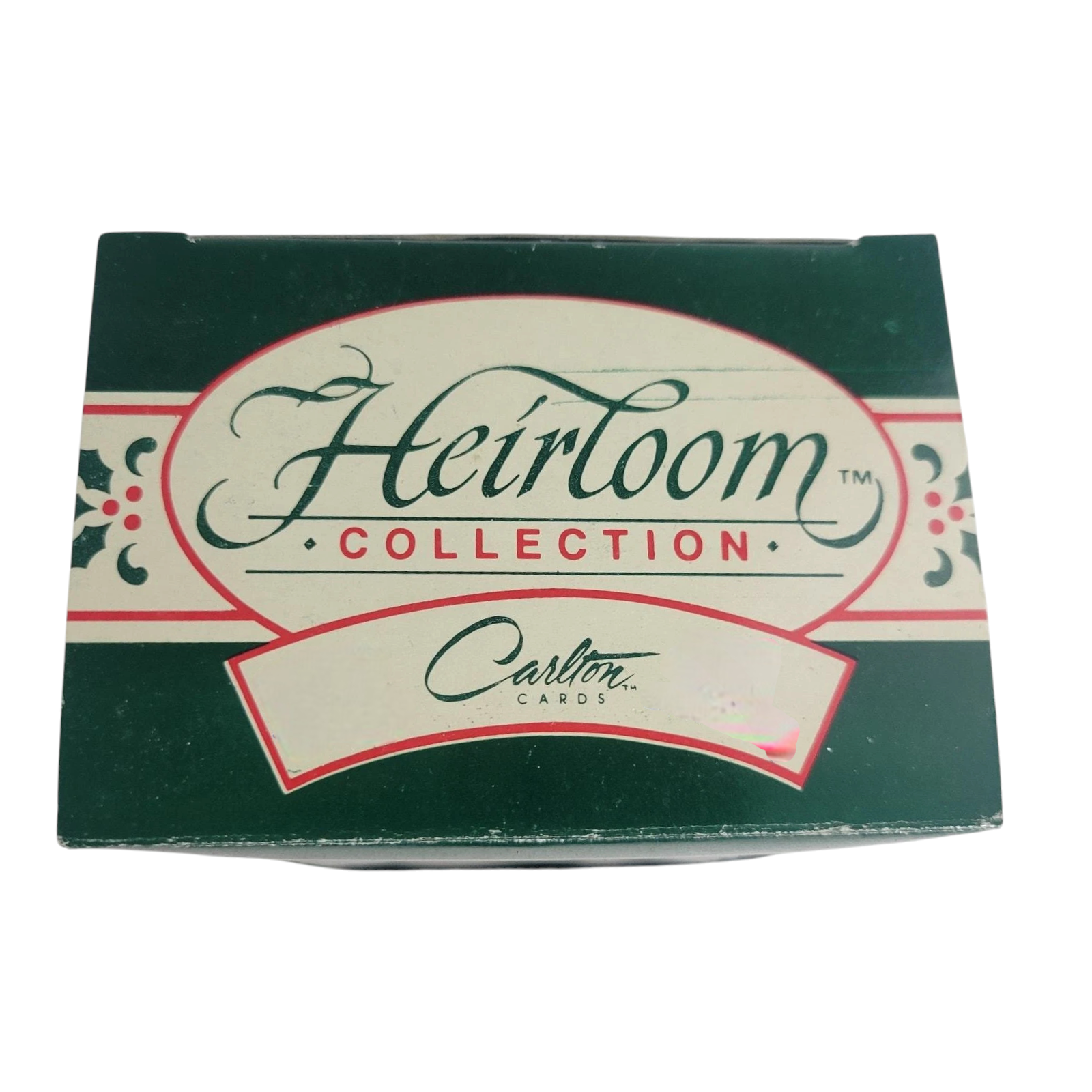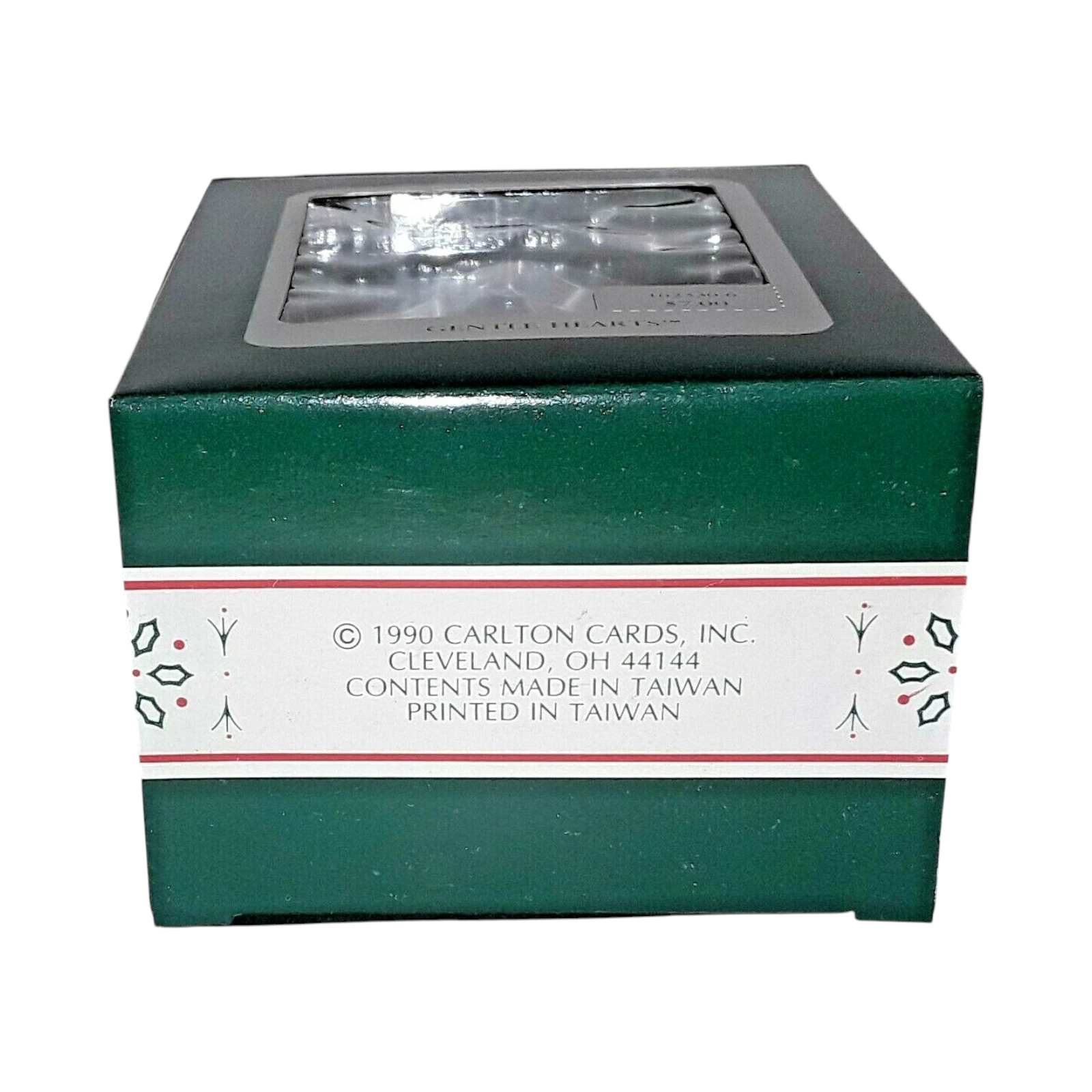 Celebrate the meaning of the season with the 1991 Gentle Hearts (Nativity) ornament — SKU 114866-4 — from the Carlton Cards Heirloom collection. This heartfelt piece features a nativity motif framed within a heart-shaped design, rendered in molded resin/plastic with delicate painted detailing and holiday-finish accents. With its graceful silhouette and meaningful sentiment, this ornament is perfect for collectors of nativity scenes, vintage holiday décor, and anyone wishing to reflect the “gentle hearts” of the season on their tree.
