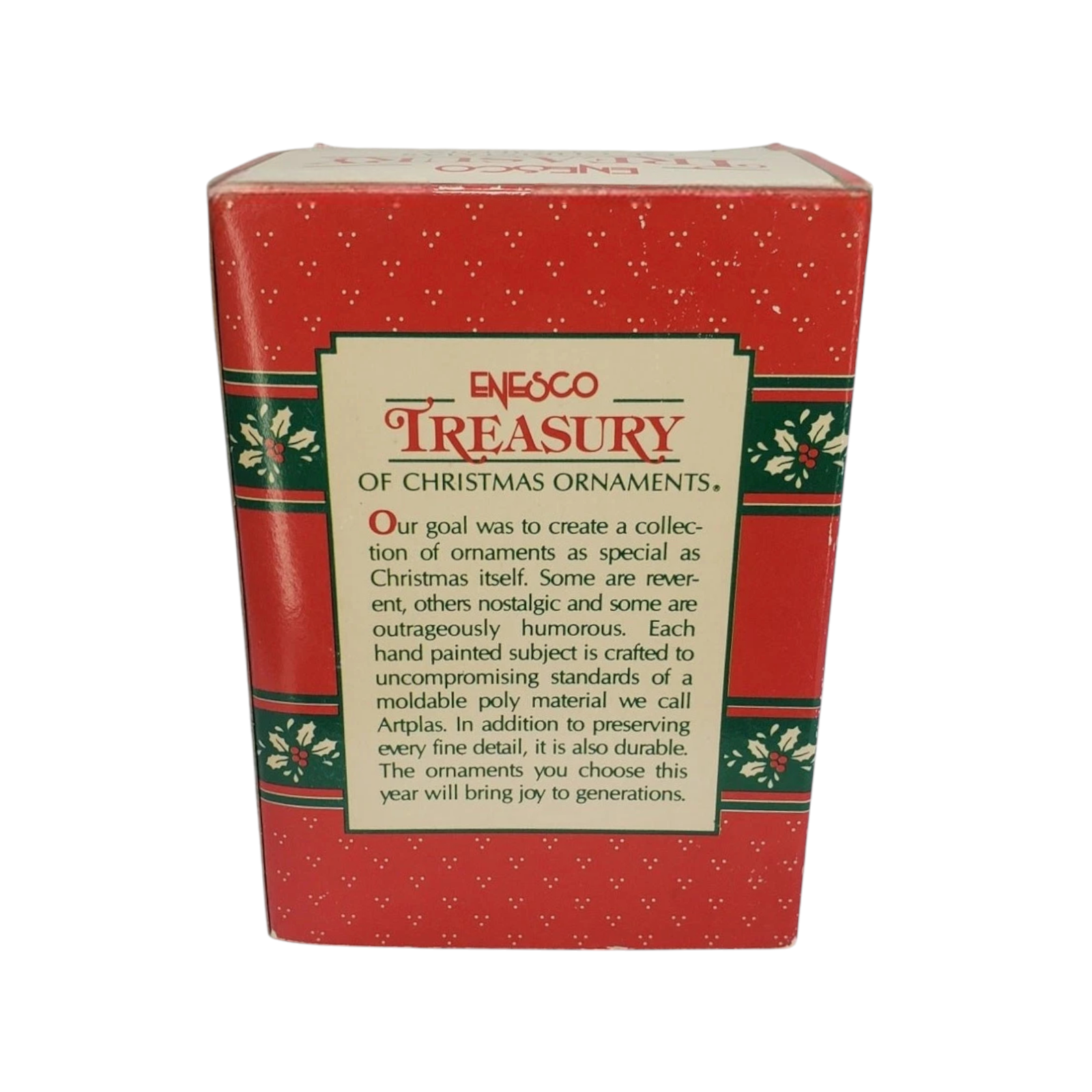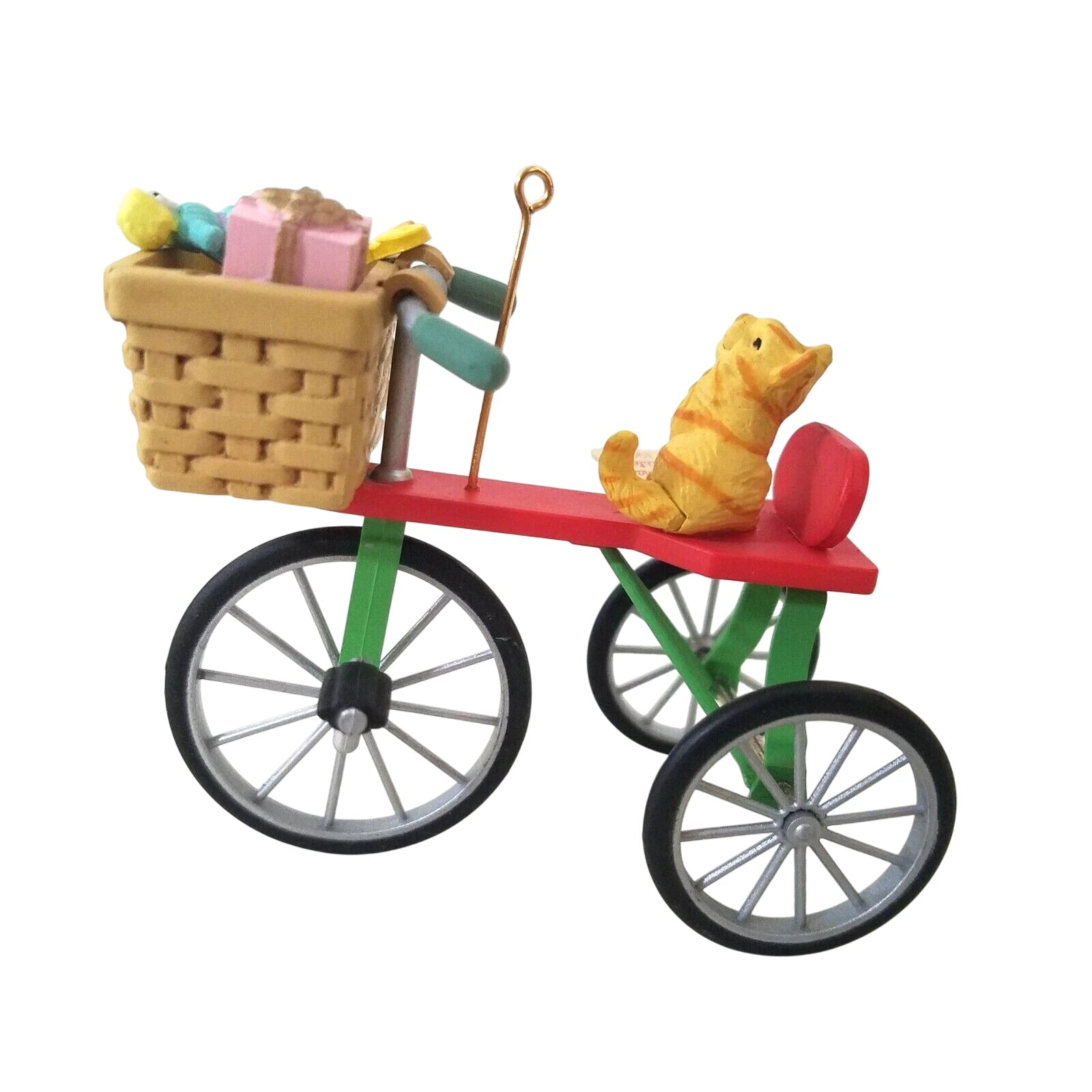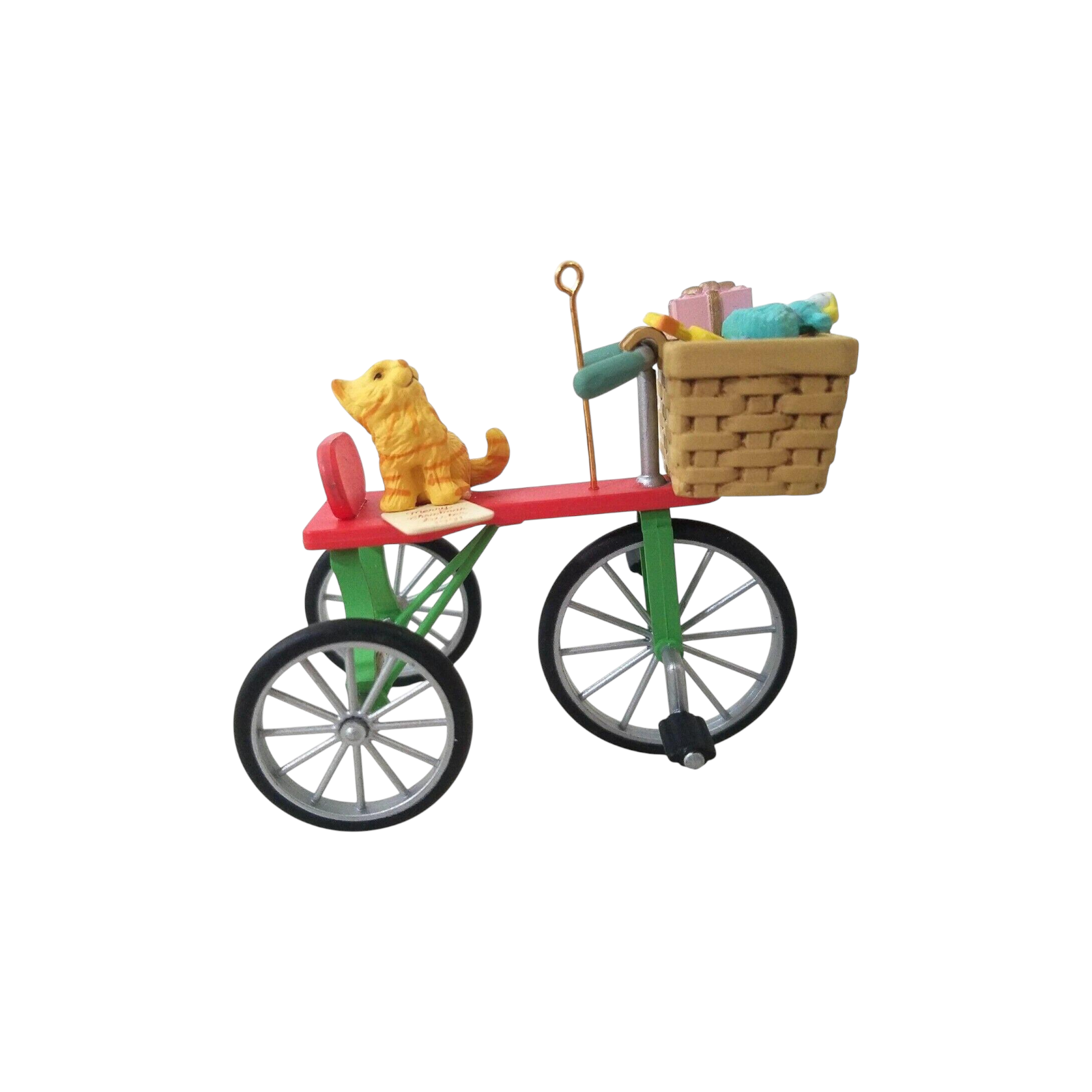 Celebrate sisterly holiday joy with this charming 1991 “Peddlin’ Fun” ornament, the inaugural piece in the Merry Christmas Sister dated series. The design features an adorable kitten pedaling a gift-laden bicycle decked out in holiday ribbons and holly, with bright festive colours and playful detail that reflect Enesco’s whimsical craftsmanship. Lightweight and hand-painted (or moulded plastic with painted detail) it brings a cheerful, nostalgic accent to any tree or collector display. As the first issue in the series, it holds special appeal for collectors building the full “Sister” themed set, and for anyone looking to gift or commemorate a sibling with holiday style.
