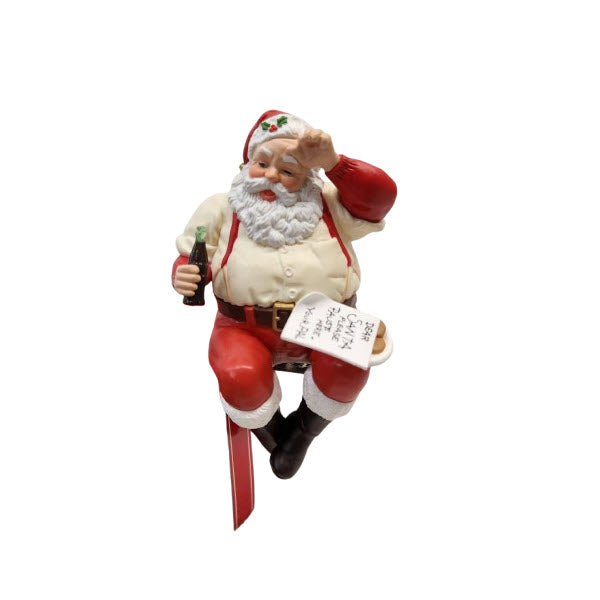 Enjoy Santa’s well‑deserved break with this festive Coca‑Cola keepsake—Santa sits relaxed, holding an ice‑cold Coke and a note reading "Please Pause Here. Your Pal," dressed in classic red and white and marked with “1991.” When plugged into a miniature tree light bulb socket via Hallmark’s Magic Cord, the scene gently flickers with cozy light—no batteries required. Includes original box and tag.