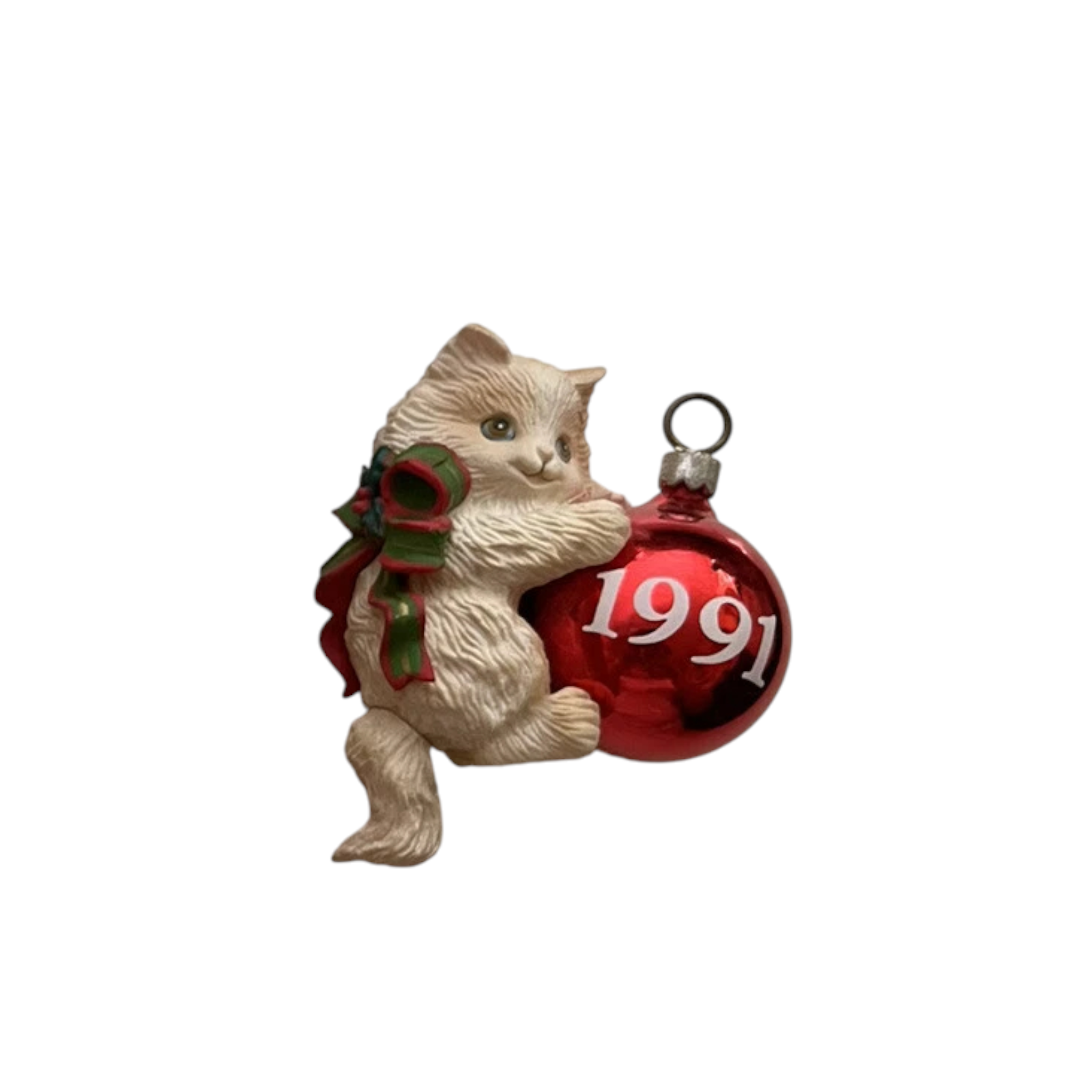 This adorable ornament features a charming kitten in a festive holiday scene, captured in the signature detail of the Heirloom line. The kitten is perhaps perched with a little ornament or holiday accessory, finished in soft colours and resin/plastic construction that’s both durable and collector-friendly. An ideal piece for animal-theme trees, kitten lovers, or anyone seeking nostalgic holiday décor with character and charm.