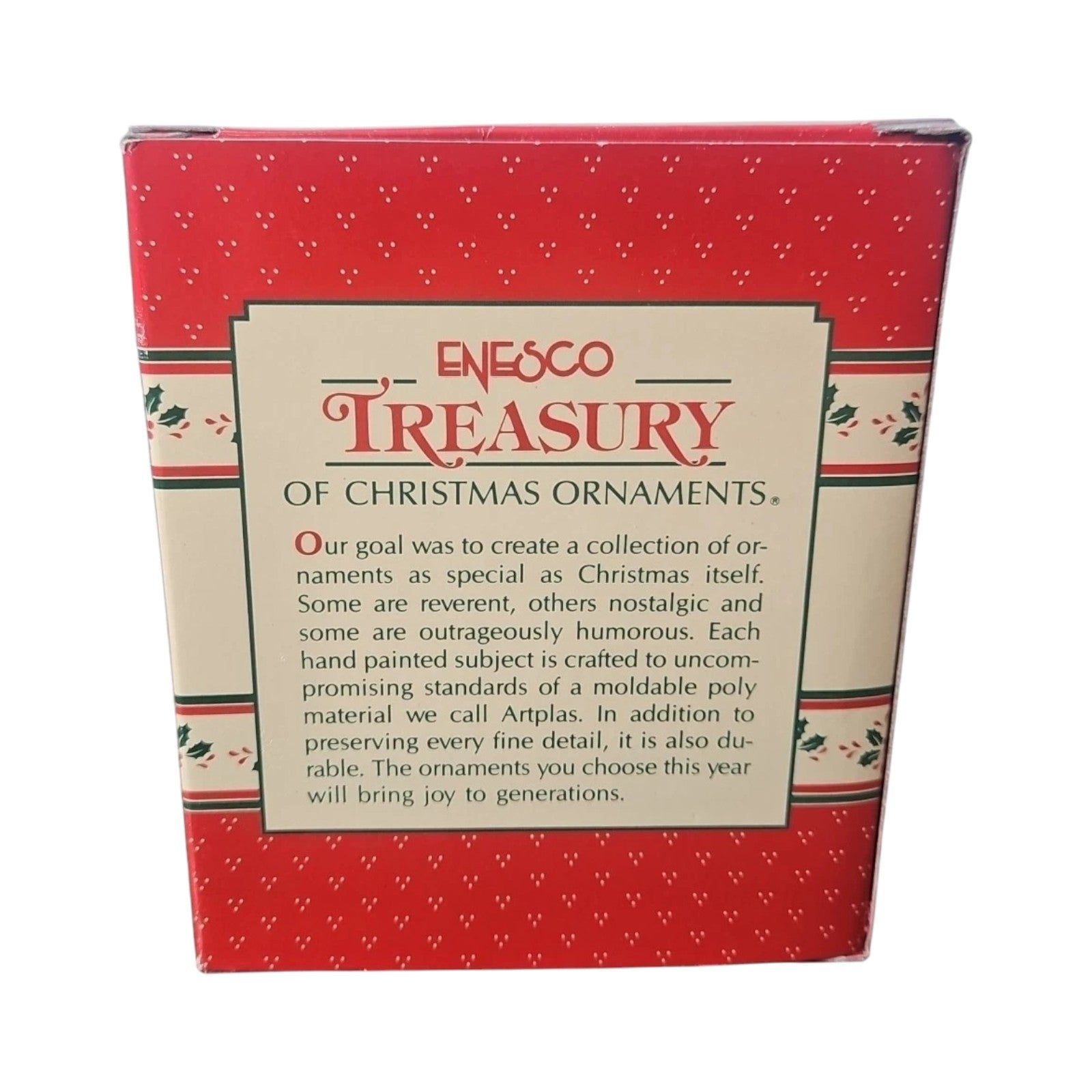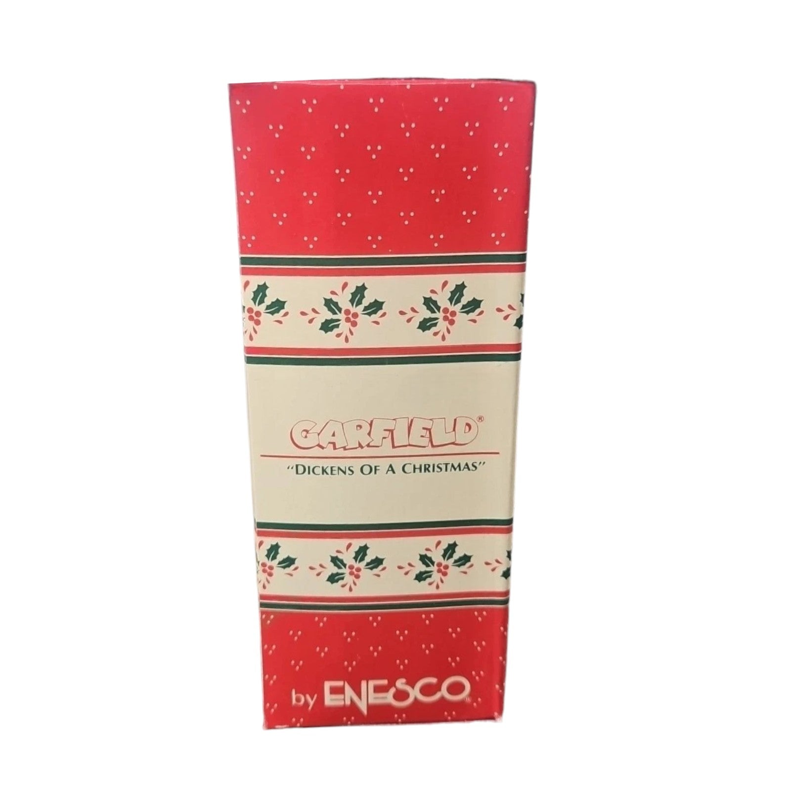 The 1991 “Scrooge With The Spirit” ornament features Garfield starring as Ebenezer Scrooge in a humorous holiday interpretation of A Christmas Carol. This third issue in the Dickens of a Christmas series shows Garfield dressed in classic Scrooge attire—top hat, nightshirt, or overcoat—holding a lantern, candle, or tiny holiday book as he begrudgingly embraces the Christmas spirit. The sculpt captures Garfield’s trademark expression: half-grumpy, half-amused, with bright hand-painted details and classic orange striping. The ornament is molded in resin/composite and originally came boxed with a hanging cord. It has no sound, motion, or lighting features.