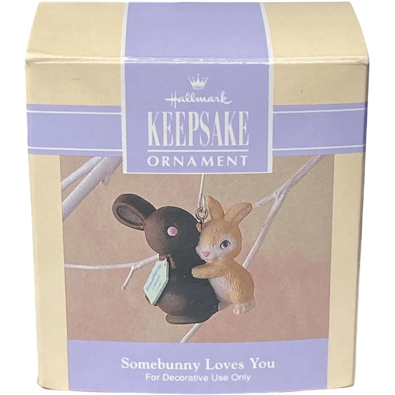 Delight in a heartfelt expression of affection with the 1991 Somebunny Loves You (Easter) ornament. This charming keepsake portrays a light brown bunny lovingly embracing a chocolate bunny, who wears a sweet tag reading, “Somebunny Loves You.” Crafted with meticulous detail and renderings by artist John “Collin” Francis, this miniature figurine comes in its original box—an ideal touch of nostalgic warmth for Easter décor or collector shelves. No power or cords are needed—simply hang and let the sentiment shine.