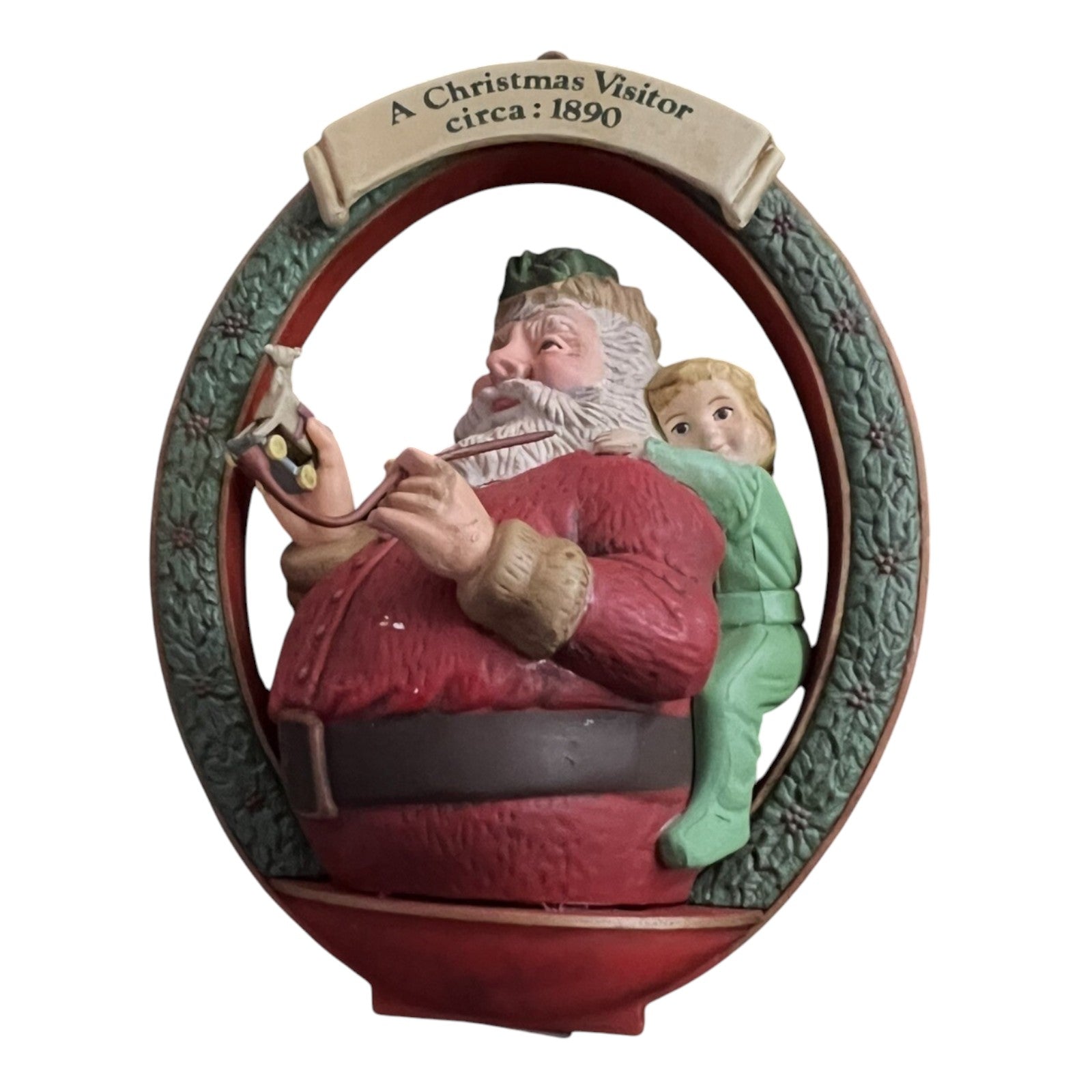 Materials: Painted resin/plastic (or molded plastic) with hanging loop. Listings describe it as “painted resin/plastic”.
