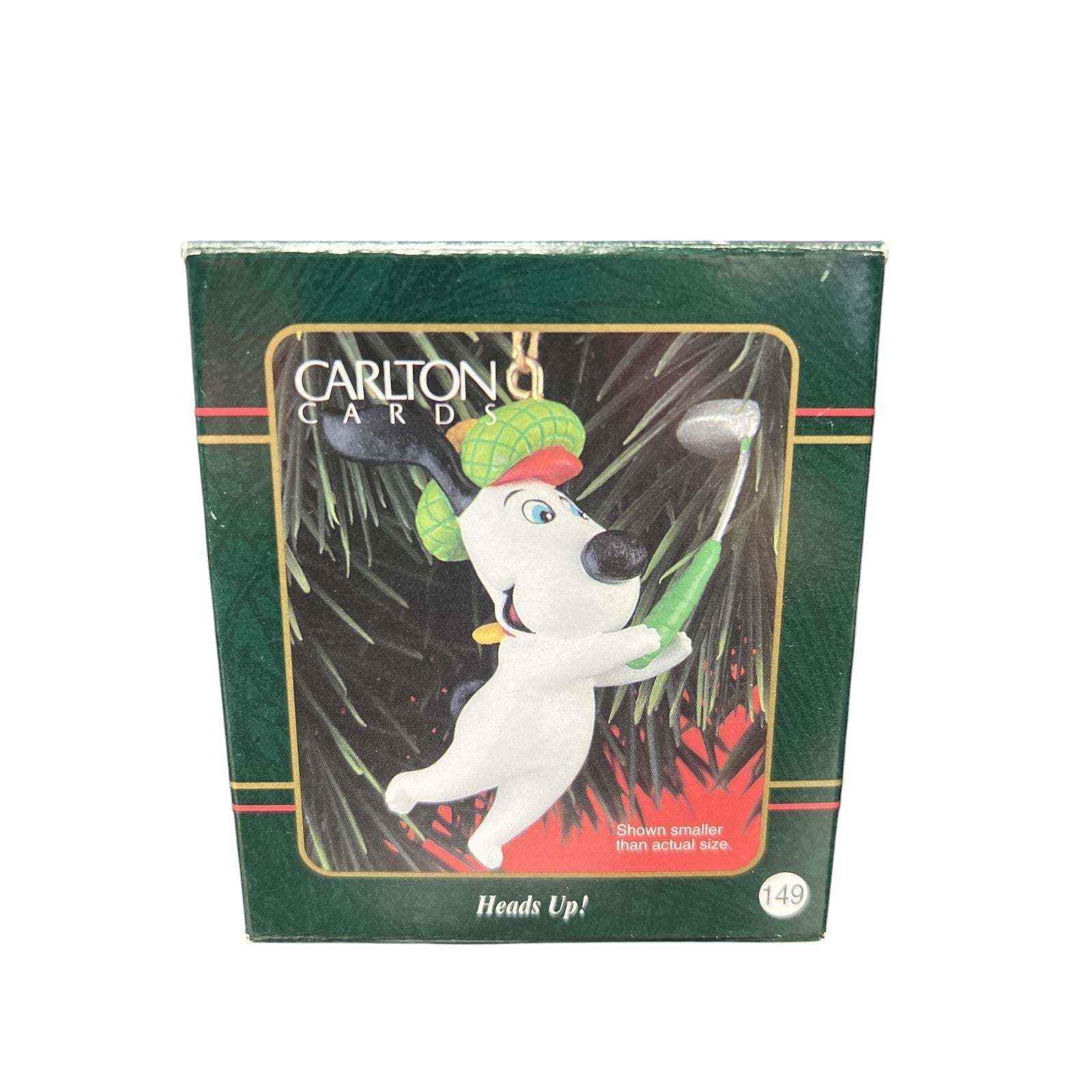 Celebrate the swing of the season with this nostalgic “Heads Up! (Golf)” ornament from Carlton Cards, featuring a golfer mid-swing with a playful tilt-feature that gives a fun “Heads Up!” motion when you hang it. Molded in painted plastic with multicoloured golf attire, club in hand and fine detail in the pose, this piece blends sports-theme appeal with collectible holiday charm. Ideal for golf lovers, sports-themed trees or vintage ornament collectors, it adds a dynamic accent to your décor and stands out for its interactive design and classic Heirloom craftsmanship.