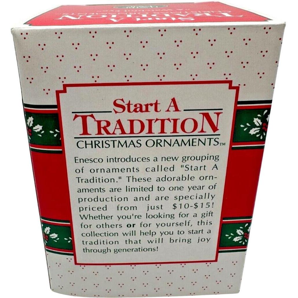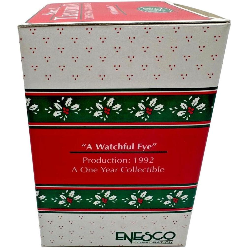 Bring classic Christmas charm to your tree with the 1992 Enesco “A Watchful Eye” ornament. This delightful collectible features Santa Claus carefully checking his list, keeping an eye on who’s been naughty or nice. Beautifully hand-painted in traditional red and white with gold trim accents, this piece highlights Enesco’s exceptional craftsmanship and nostalgic holiday design. Perfect for Santa collectors and vintage enthusiasts, this ornament captures the warmth, joy, and timeless spirit of Christmas.