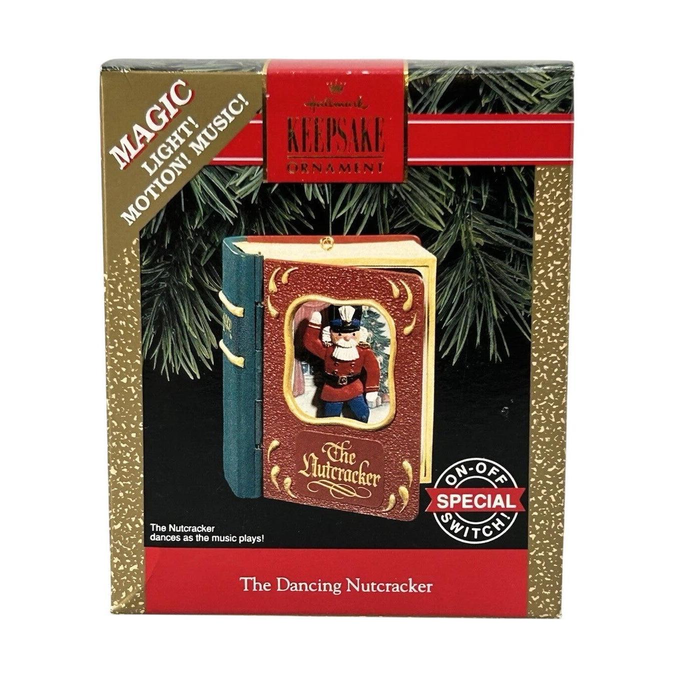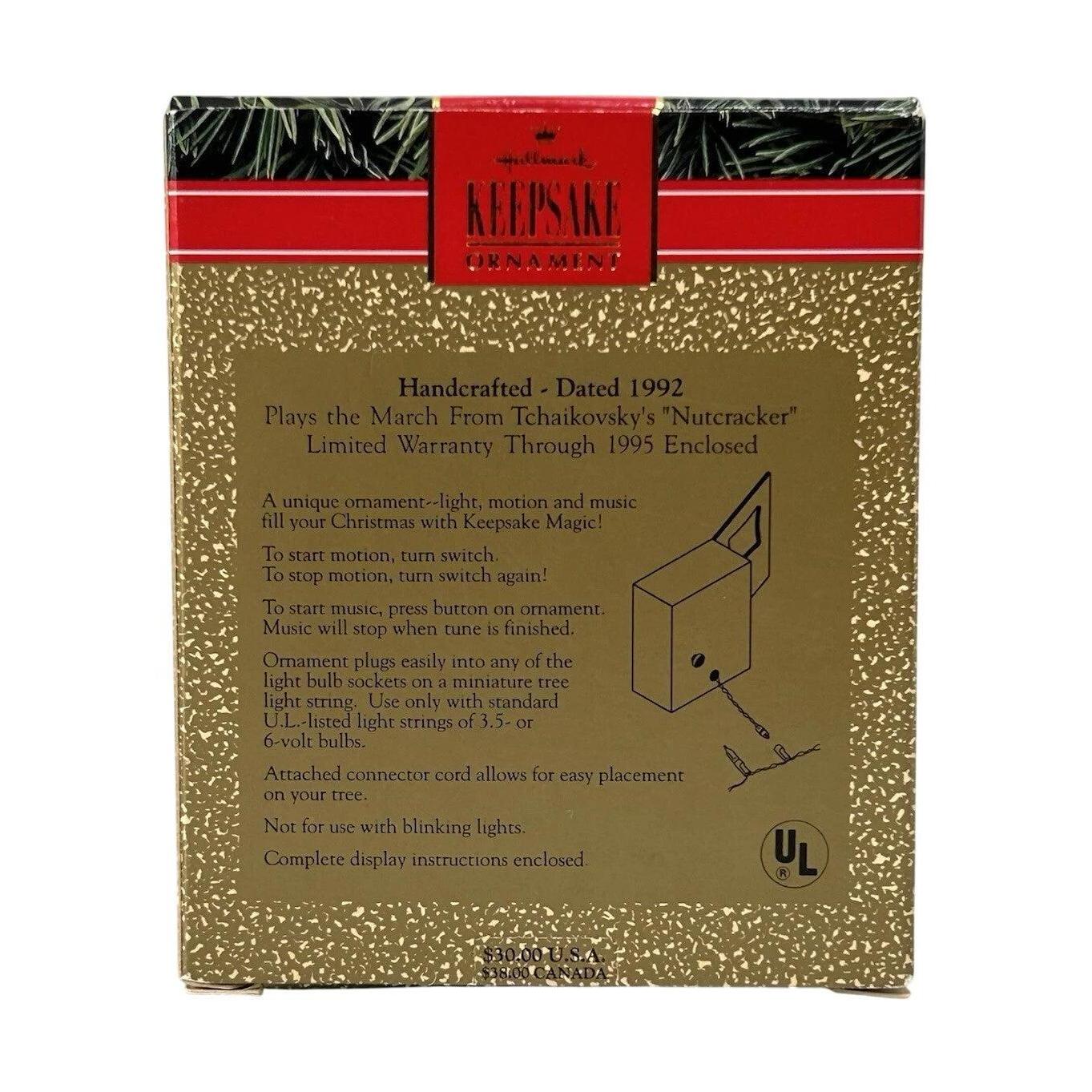 Celebrate the holiday season with the enchanting 1992 Dancing Nutcracker, a festive Magic Series keepsake that opens like a mini storybook to reveal a dancing Nutcracker figure inside. Plug it into a standard miniature Christmas light socket to activate motion, lights, and play Tchaikovsky’s Overture to The Nutcracker as the figure gracefully moves. This keepsake arrives mint in its original box with hanging loop, instruction booklet, and connector cord included—no batteries required. Worthy of collectors and families alike for its timeless charm.