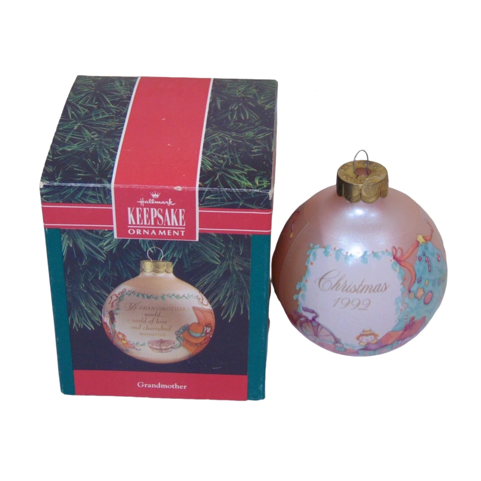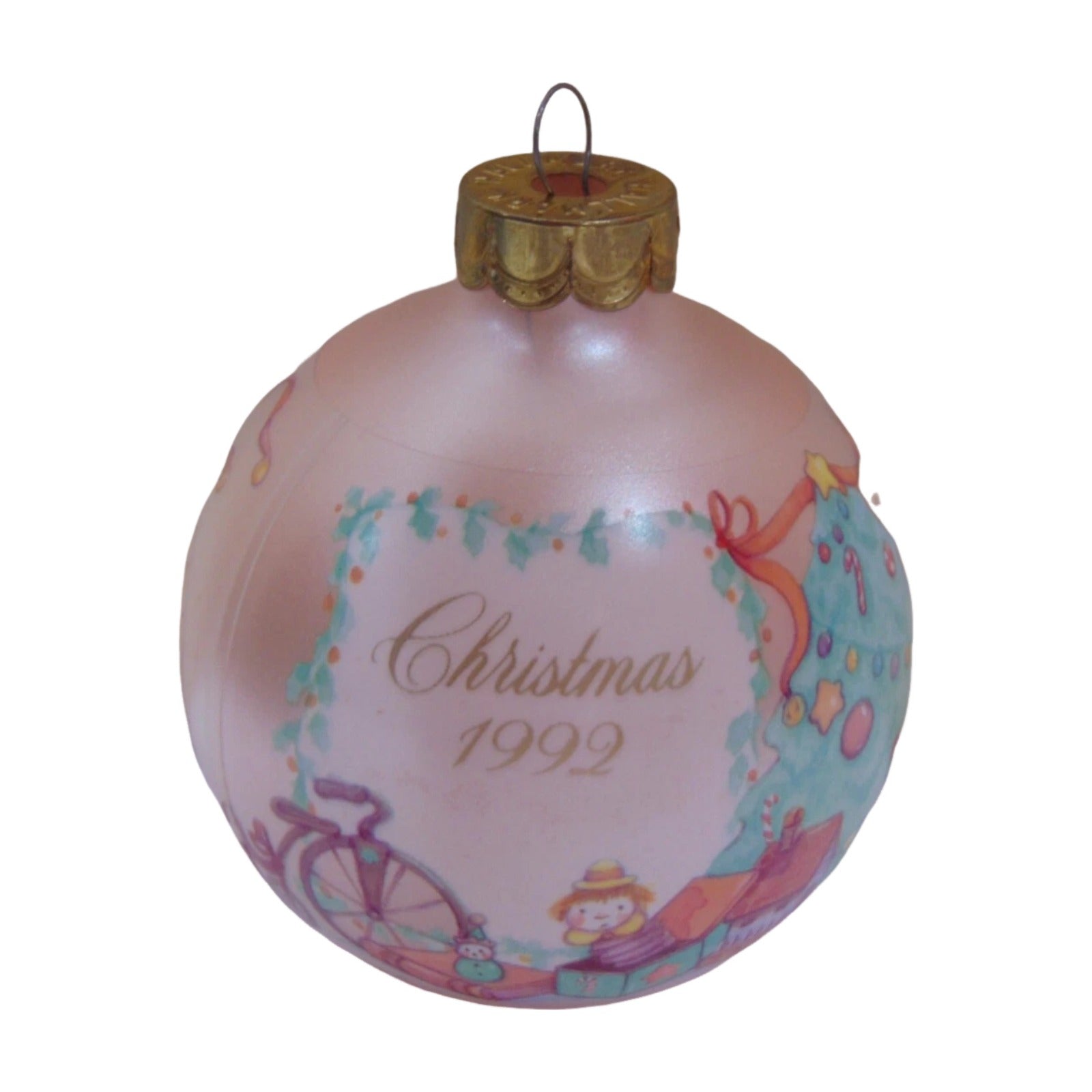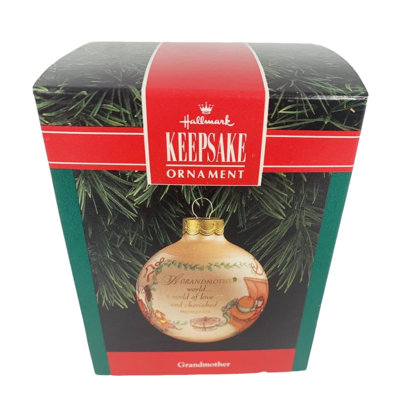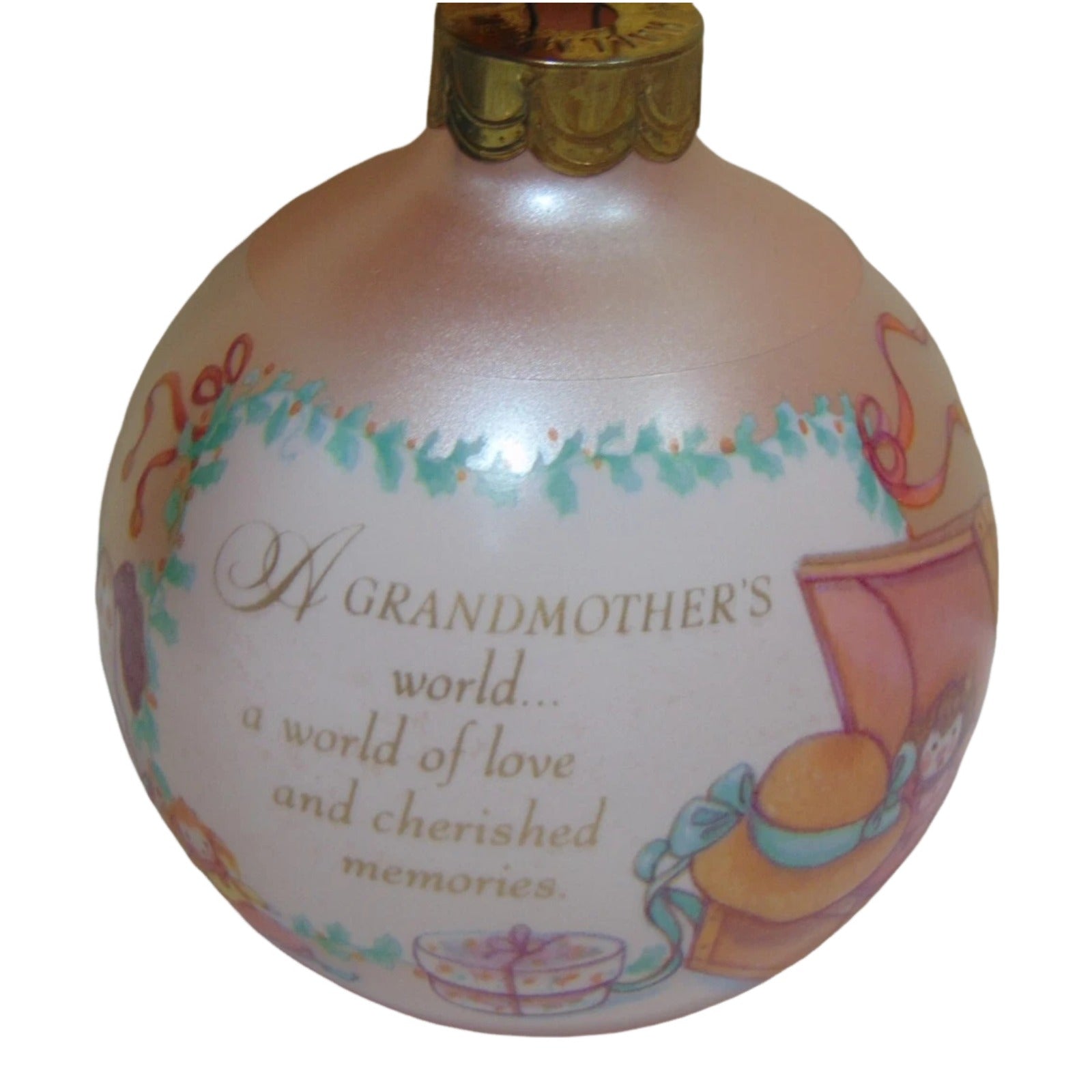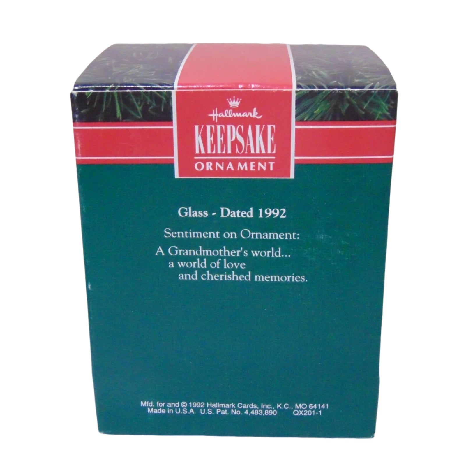 This heartfelt 1992 ornament honors grandmothers with grace and warmth. Crafted as a delicate glass ball, it features the sentimental inscription: “A Grandmother’s world… a world of love and cherished memories.” beautifully adorned with floral and gift motifs. The reverse side displays Christmas 1992, marking the year of release. It presents beautifully in its original keepsake box and requires no batteries, cords, or power—ready for display instantly.