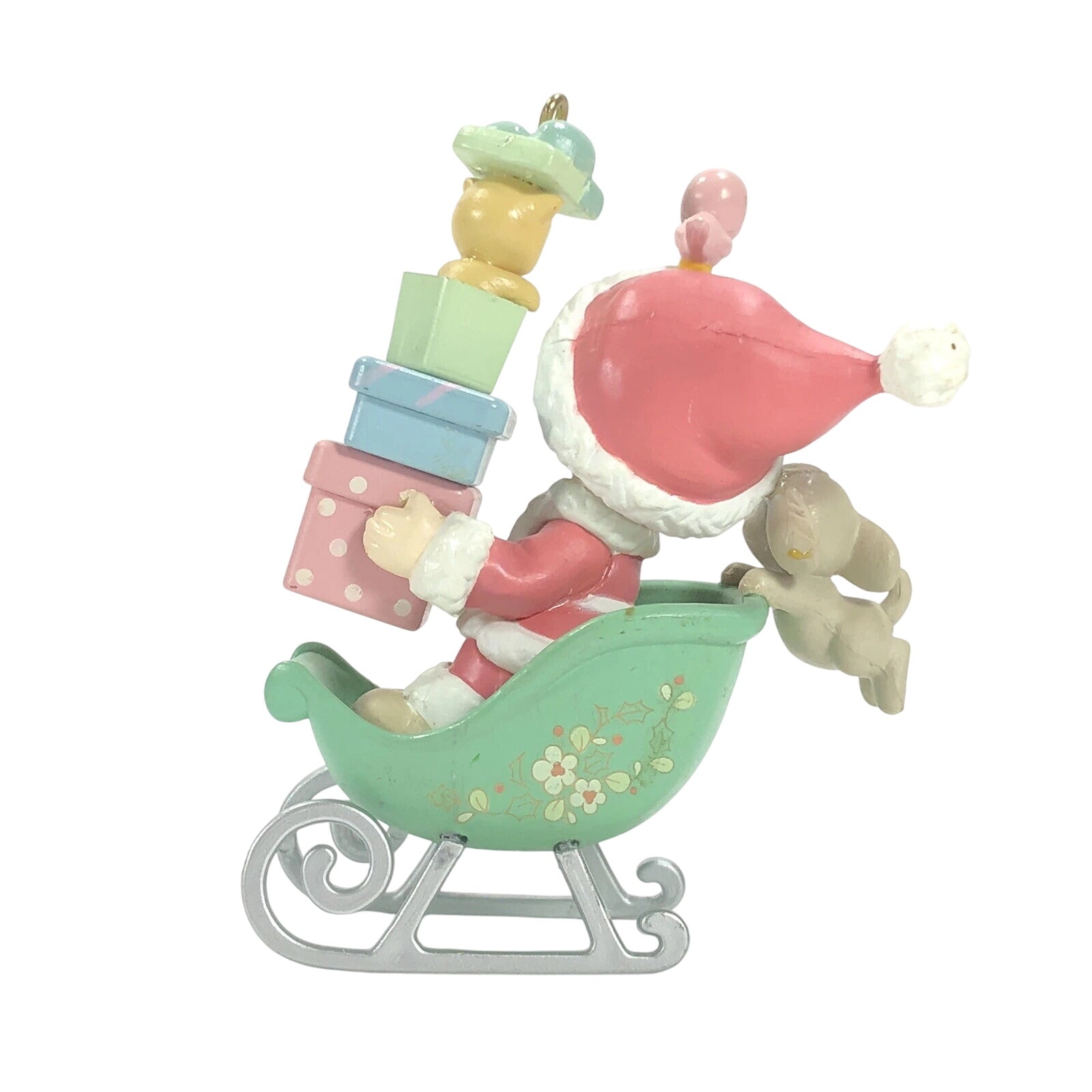 Celebrate the excitement of holiday gatherings with the 1992 Enesco “Holiday Expressions – Guess Who’s Coming for Christmas” ornament from the beloved Precious Moments collection. This heartwarming collectible features a joyful child peeking through a window, eagerly awaiting the arrival of loved ones for Christmas. Hand-painted in delicate pastel hues on fine porcelain bisque, it captures the innocence and anticipation that make the holidays so special. A perfect keepsake for families and Precious Moments collectors, this piece embodies warmth, love, and the timeless joy of togetherness.