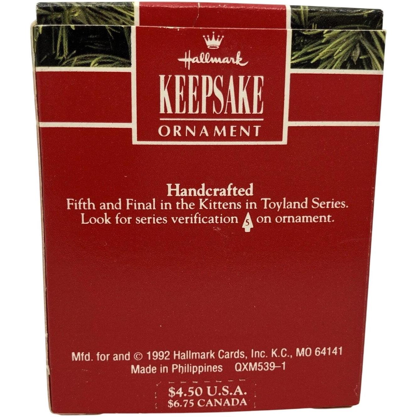 Join the playful fun of 1992 with Kittens in Toyland #5, the final piece in Hallmark’s beloved Kittens in Toyland miniature series. This adorable ornament features a mischievous kitten bouncing atop a colorful pogo stick, with the year “1992” subtly embossed into the design. Perfectly sized for tabletop mini‑trees or clustered displays. The set includes the ornament, original box, and hang tag—ideal for collectors seeking mint-in-box condition. There are no lights, motion, or sound—no power needed—just ready to hang or display.