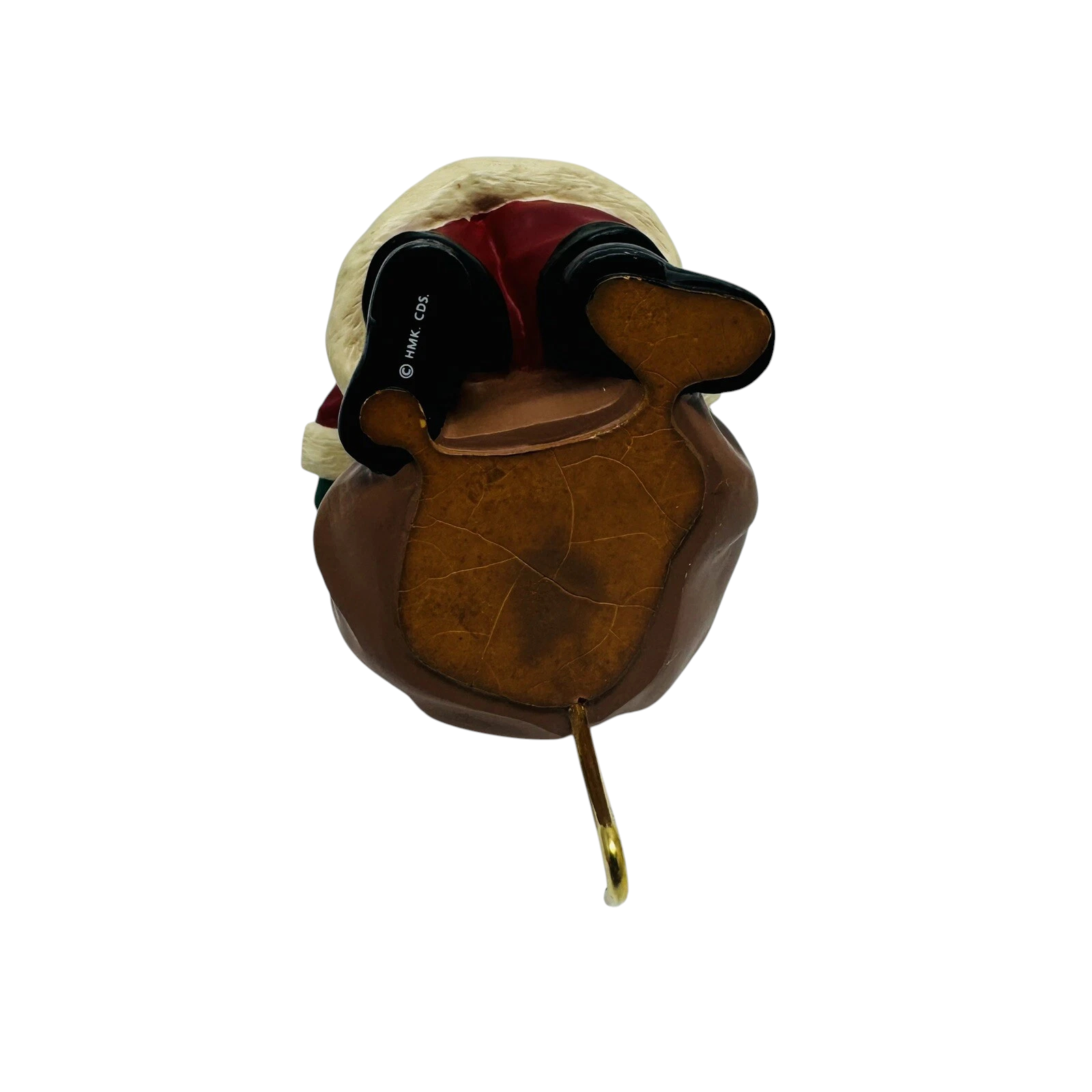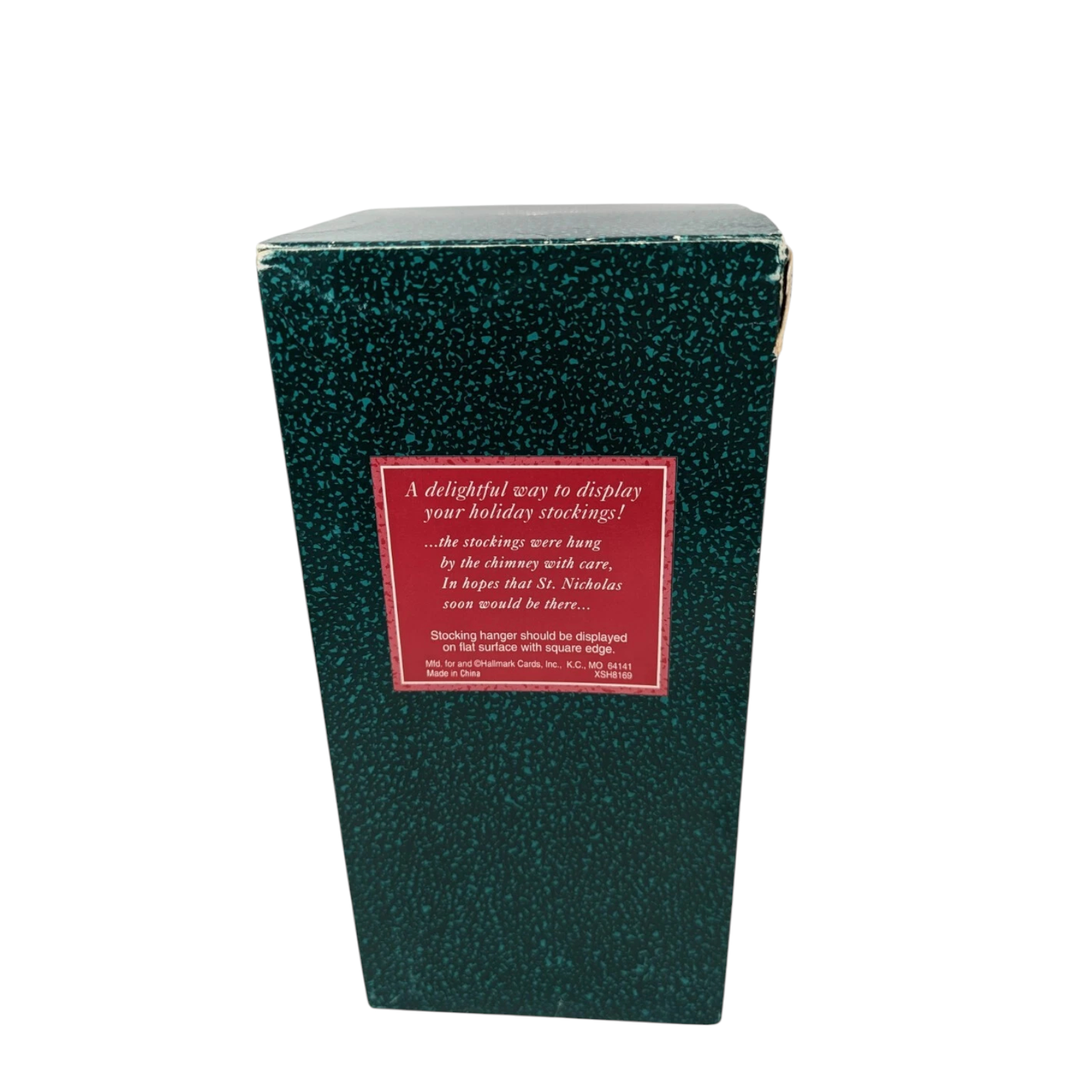 The 1992 “Nostalgic Santa” (Stocking Hanger) is a decorative Christmas mantel hanger featuring Santa Claus in a classic old-fashioned style. Santa is usually depicted in a traditional red suit with vintage detailing, holding a toy sack, lantern, or holiday accessory. The base is weighted for stability and includes a curved metal hook designed to hold a stocking securely on a mantel or shelf. The sculpting reflects an early-’90s nostalgic look with warm colors, soft shading, and hand-painted details. This item is a stocking hanger, not a hanging ornament, and contains no lights, no music, and no motion.
