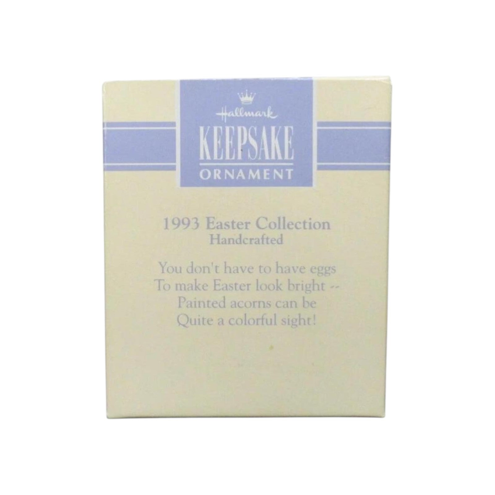 This sweet Easter ornament from 1992 features a cheerful squirrel holding a pastel basket filled with nut‑shaped eggs—playfully titled Nutty Eggs. Designed by Julia Lee, the squirrel wears a bow tie and bright spring colors, perfect for seasonal décor. The ornament comes with the original dated box and tag, providing collectible value. It requires no batteries or cords and includes no built-in lighting, making it purely decorative.