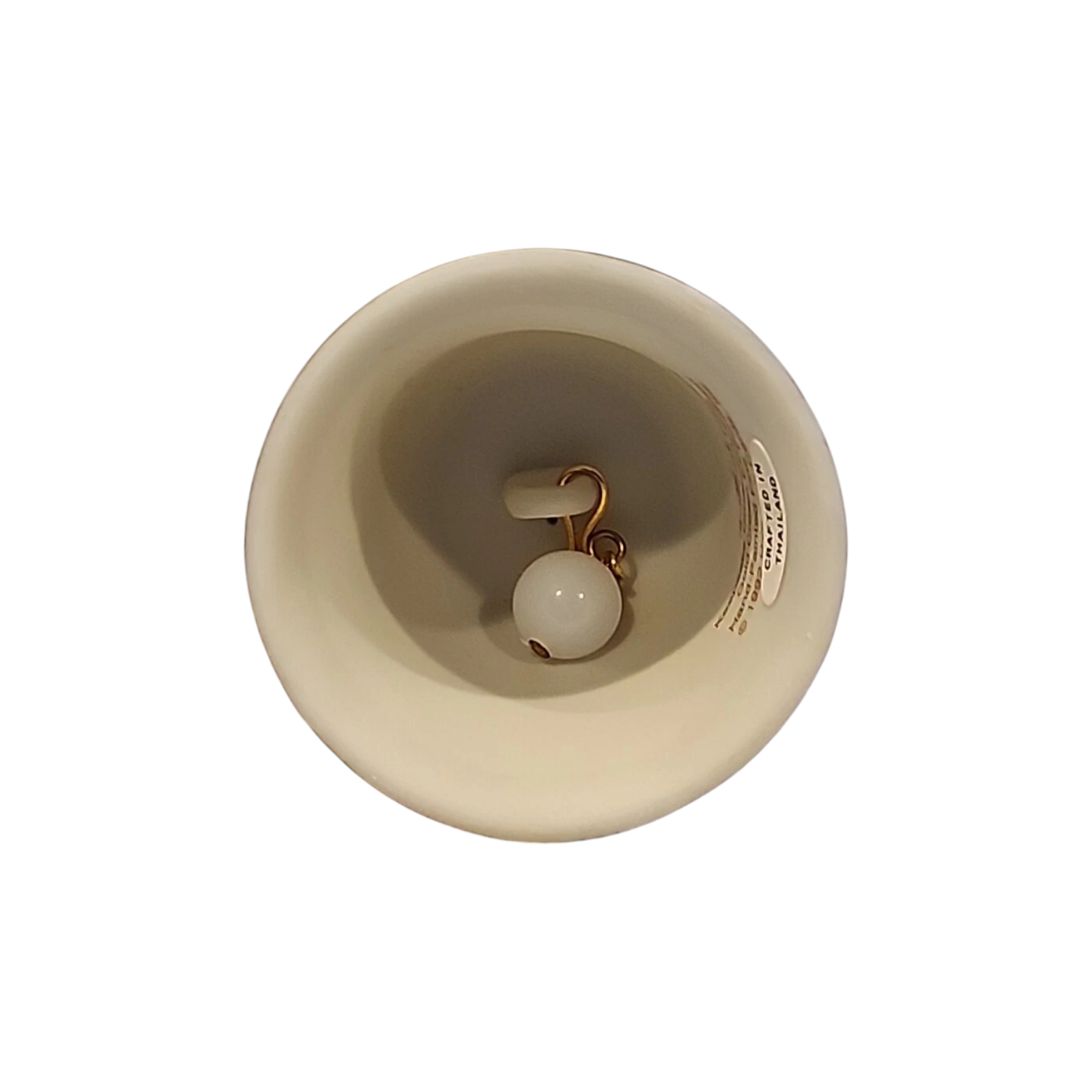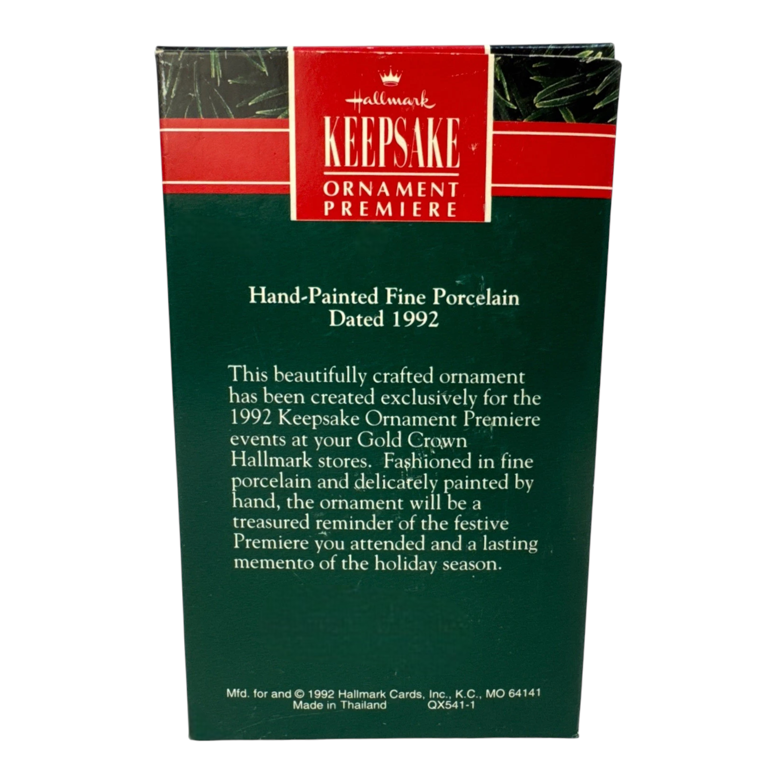 This charming 1992 keepsake ornament is crafted in a porcelain bell shape, painted white and crowned with a small green Christmas tree topped by a golden star. Around the bell’s base, the words “Nineteen Hundred and Ninety‑Two” evoke nostalgic holiday spirit. Designed by LaDene Votruba, this elegant piece arrives with the original box and dated tag. It’s purely decorative—no batteries, cords, or lighting needed—but its timeless charm speaks volumes.